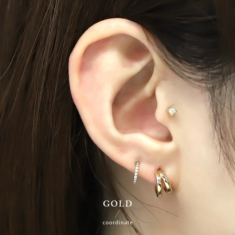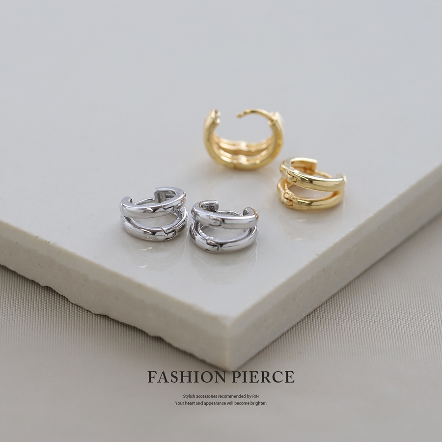 ピアス ダブルリング18Kコーティングニッケルフリー シンプルフープリングピアス