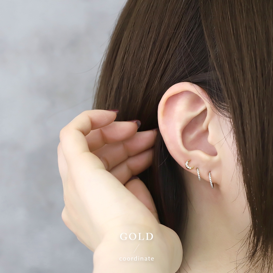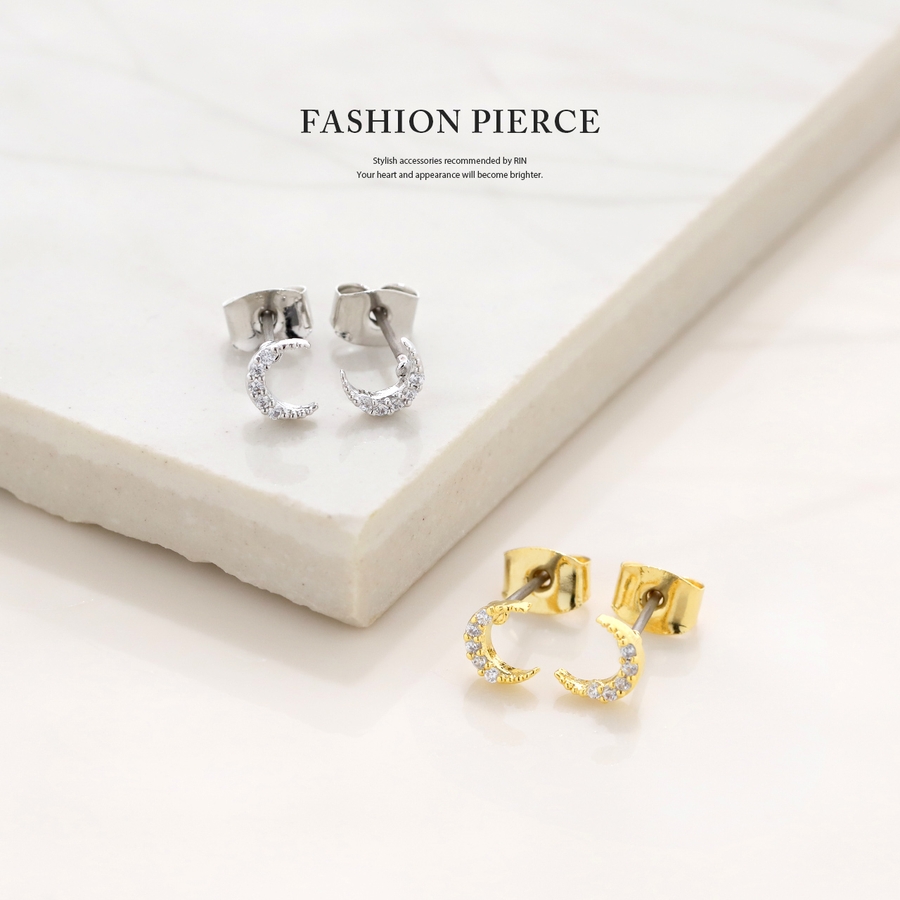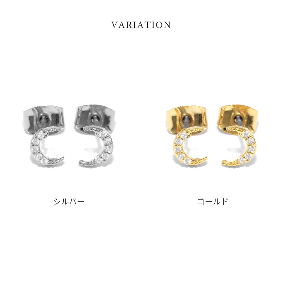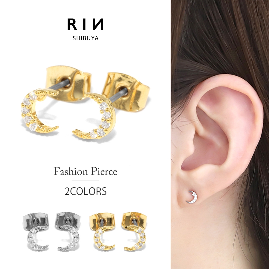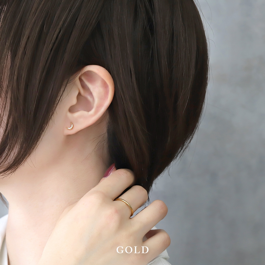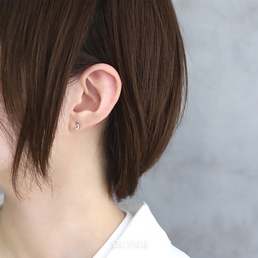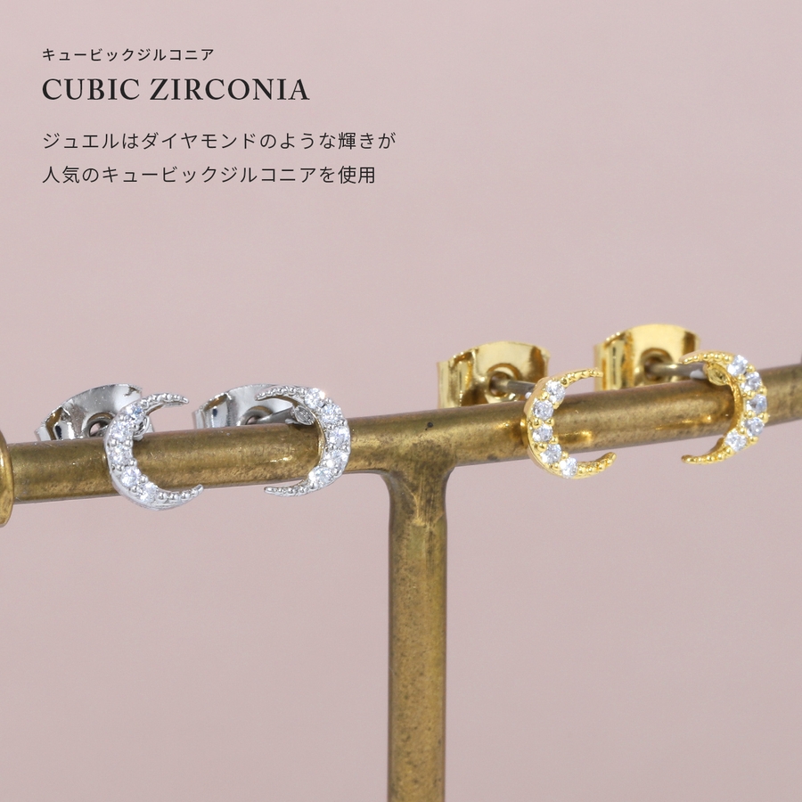 ピアス18Kコーティング 月ムーンシンメトリー上品 キュービックジルコニアスタッ…