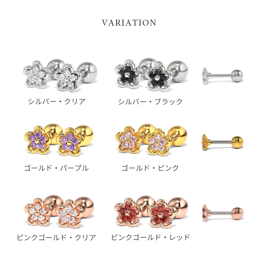 ピアス お花フラワープサイズ キュービックジルコニアストーンスタッドネジ式 | ボディピアス専門店凛RIN | 詳細画像2