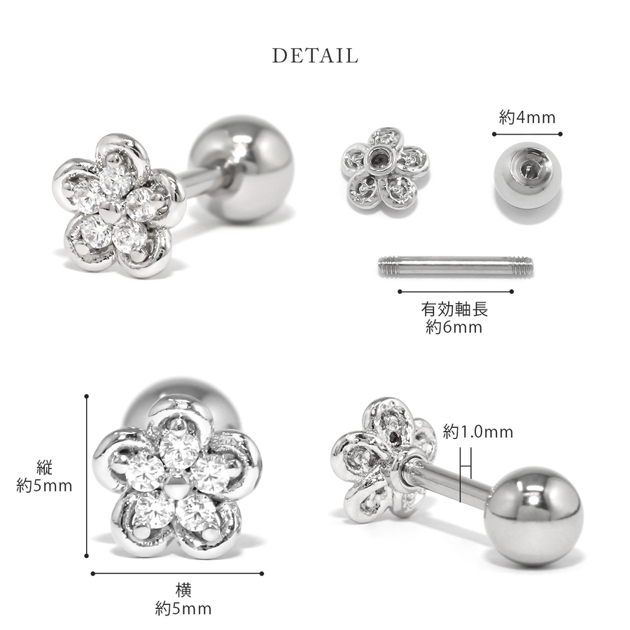 ピアス お花フラワープサイズ キュービックジルコニアストーンスタッドネジ式 | ボディピアス専門店凛RIN | 詳細画像5