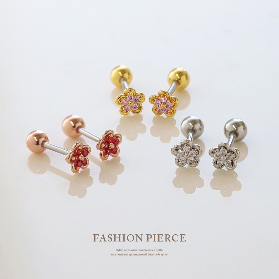 ピアス お花フラワープサイズ キュービックジルコニアストーンスタッドネジ式 | ボディピアス専門店凛RIN | 詳細画像1