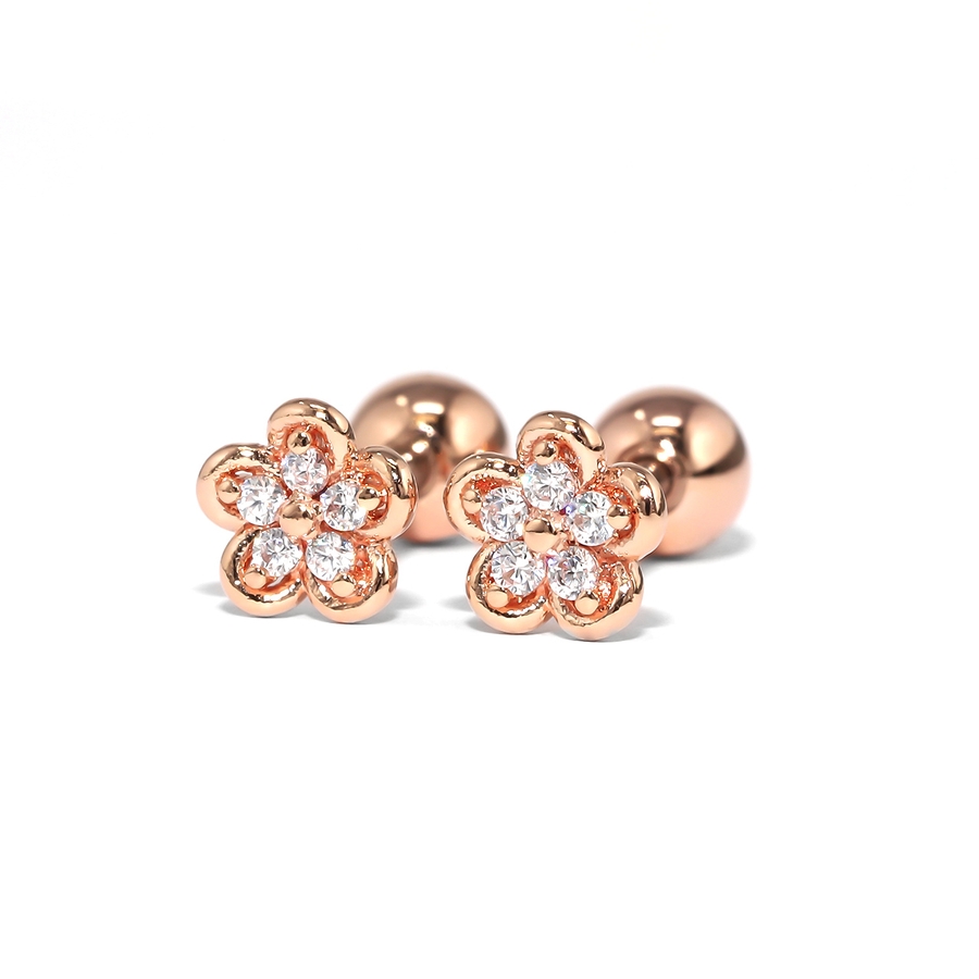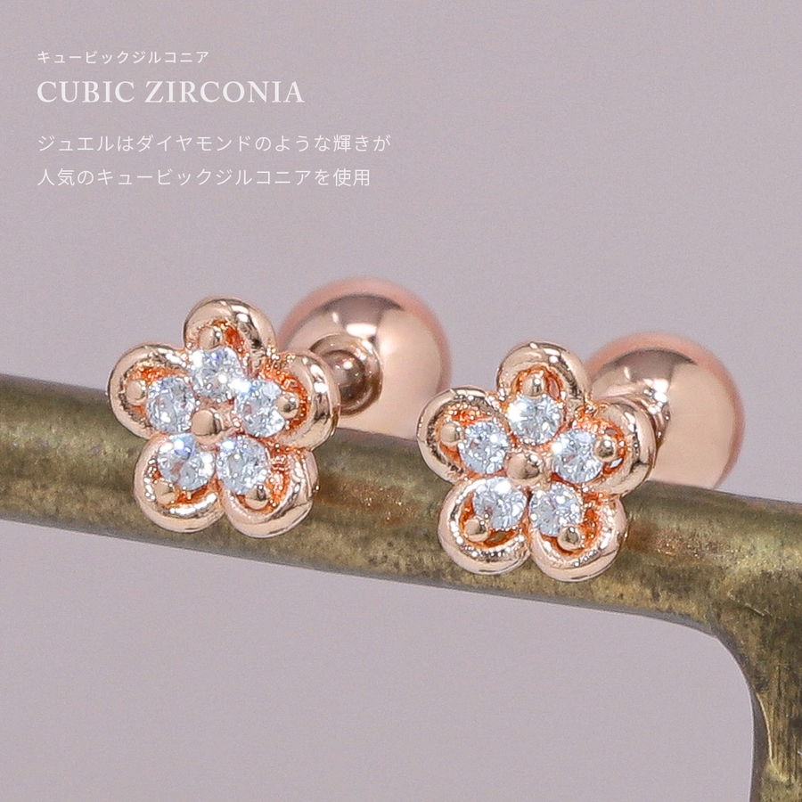 ピンクゴールド・クリア | ピアス お花フラワープサイズ キュービックジルコニアストーンスタッドネジ式 | ボディピアス専門店凛RIN