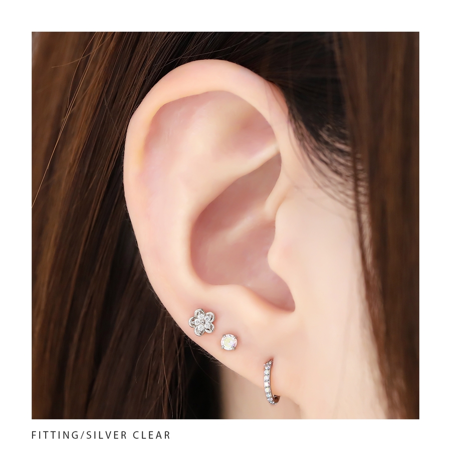 シルバー・クリア | ピアス お花フラワープサイズ キュービックジルコニアストーンスタッドネジ式 | ボディピアス専門店凛RIN