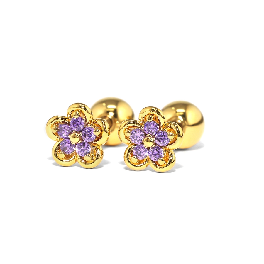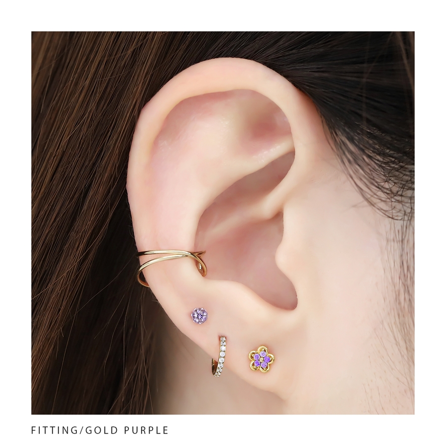 ゴールド・パープル | ピアス お花フラワープサイズ キュービックジルコニアストーンスタッドネジ式 | ボディピアス専門店凛RIN