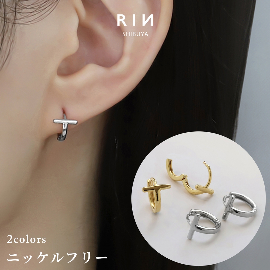 T字デザイン ピアス18Kロジウムニッケルフリー レディース
