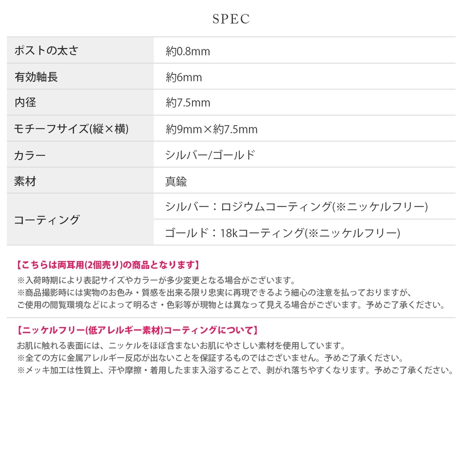 シルバー:ロジウムコーティング(※ニッケルフリー) ゴールド:18kコーティング(※ニッケルフリー)