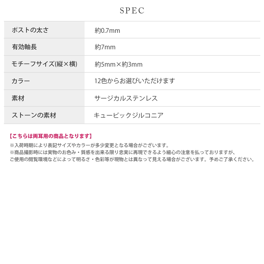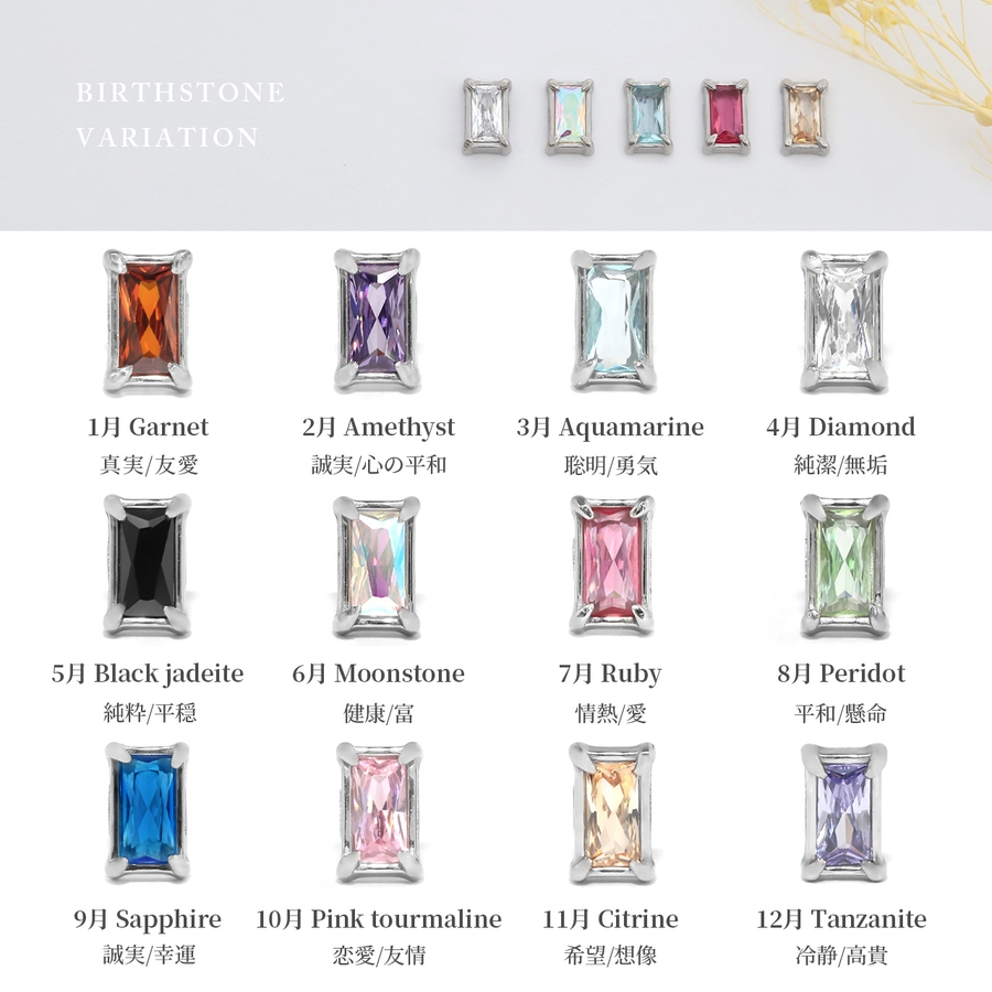 | カラー | 1月(ガーネット) / 2月(アメジスト) / 3月(アクアマリン) / 4月(ダイヤモンド) / 5月(ブラックジェダイト) / 6月(ムーンストーン) / 7月(ルビー) / 8月(ペリドット) / 9月(サファイア) / 10月(ピンクトルマリン) / 11月(シトリン) / 12月(タンザナイト) |