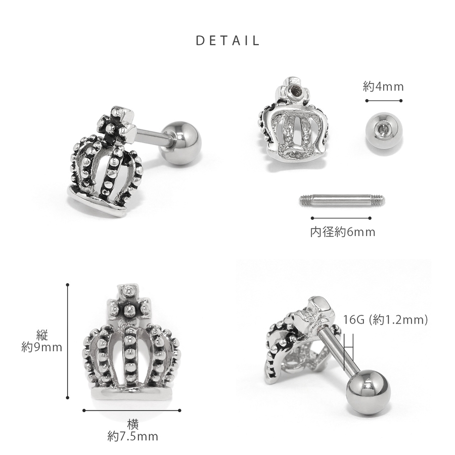 軟骨ピアス クラウン王冠キングクイーン王様 ボディピアス