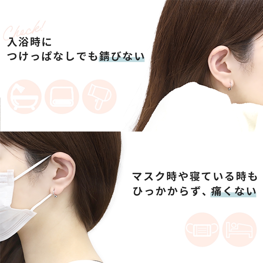 シンプルでずっと付けられるものを探していました。小さい子供がいるので、キャッチがないものはすごくありがたい!!
