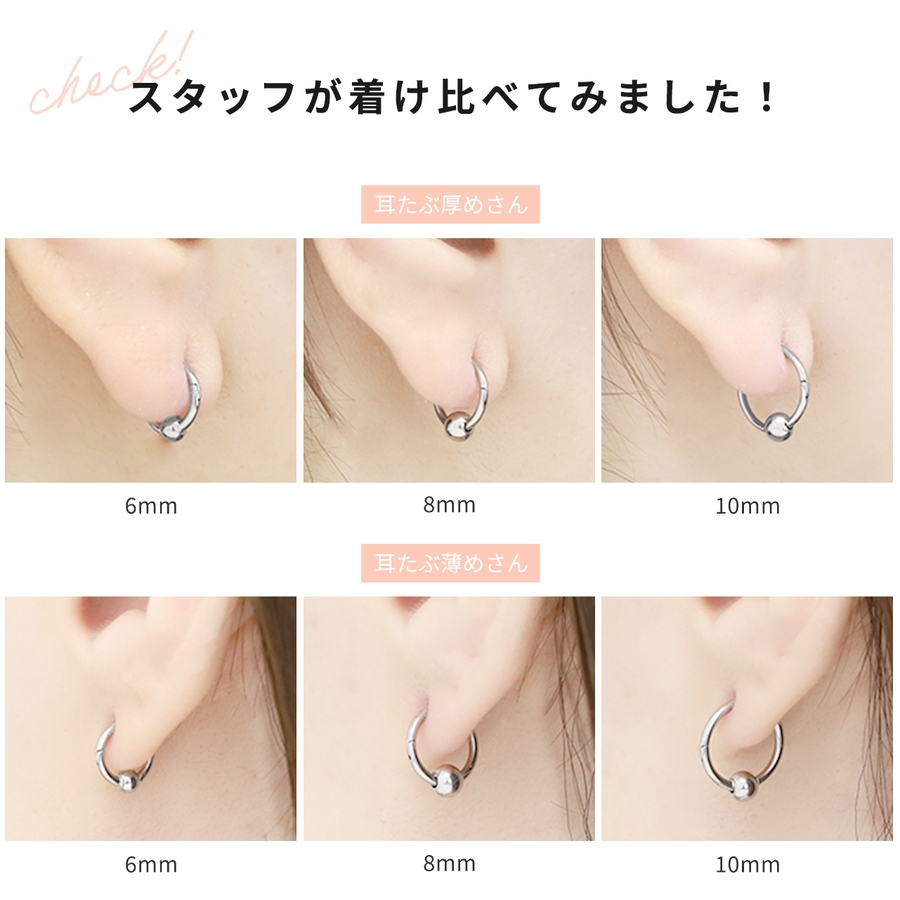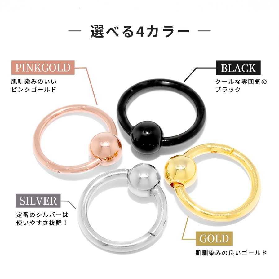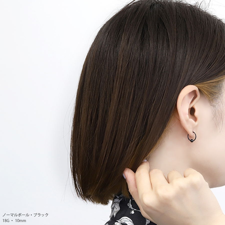 小ぶりなので合わせやすくていいです。失くさないようにしないと…!さん (30代 / 女性 )購入アイテム:カラー ノーマルボール・ブラックサイズ 18G・8mm×4mm