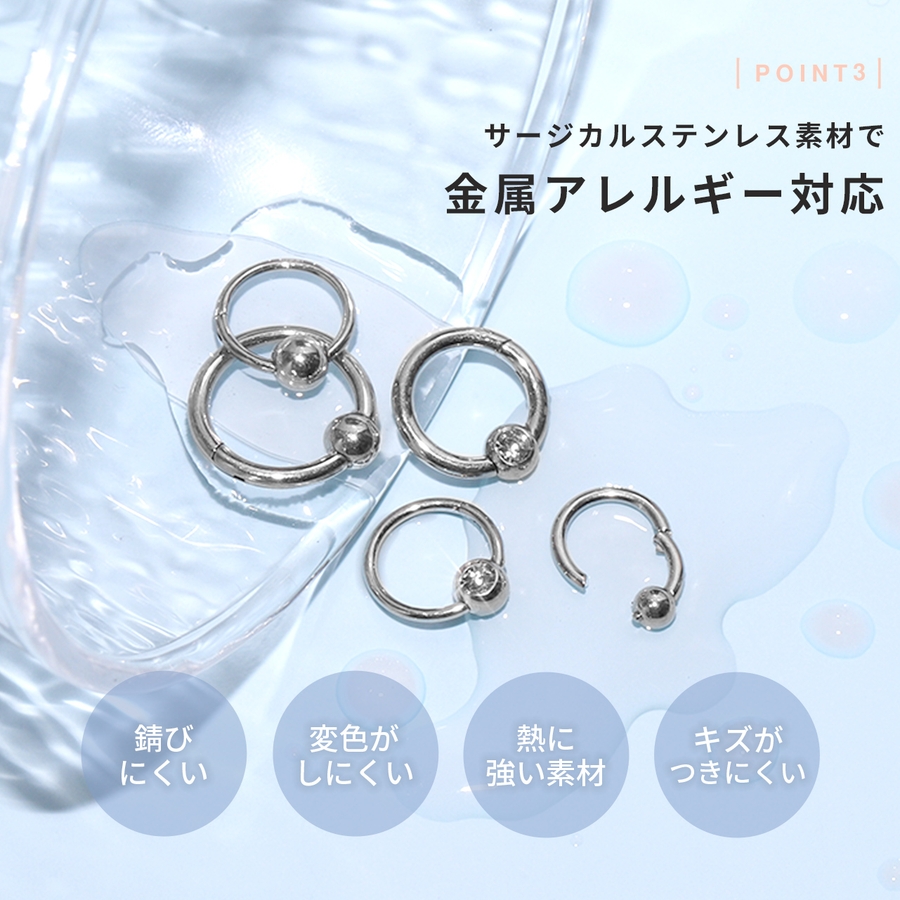 投稿日:2024.04.22さん (30代 / 女性 )購入アイテム:カラー ノーマルボール・シルバーサイズ 14G・6mm×3mm - シンプル