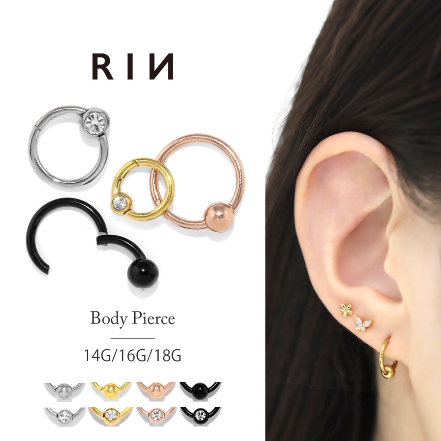 | ショップ情報 | ボディピアス専門店「凛RIN」では 軟骨ピアスやキャッチ、ピアスチャームを中心に様々な商品を激安で販売しています! へそピアスや軟骨ピアス、トラガスやラブレットなどピアスをつけたい部位ごとに商品を検索できるほか、「ストレートバーベル」「バナナバーベル」などピアスの種類・形状ごと、人気の14Gや16Gはもちろん18Gや12Gなど太さ(ゲージ)ごとにお気に入りのボディピアスを探すこともできます。 更に、凛RINスタッフおすすめのコーディネート画像も絶賛掲載中!ぜひご覧ください☆ |