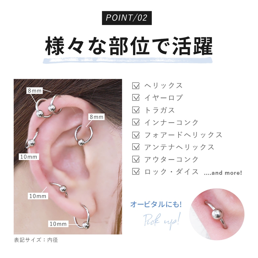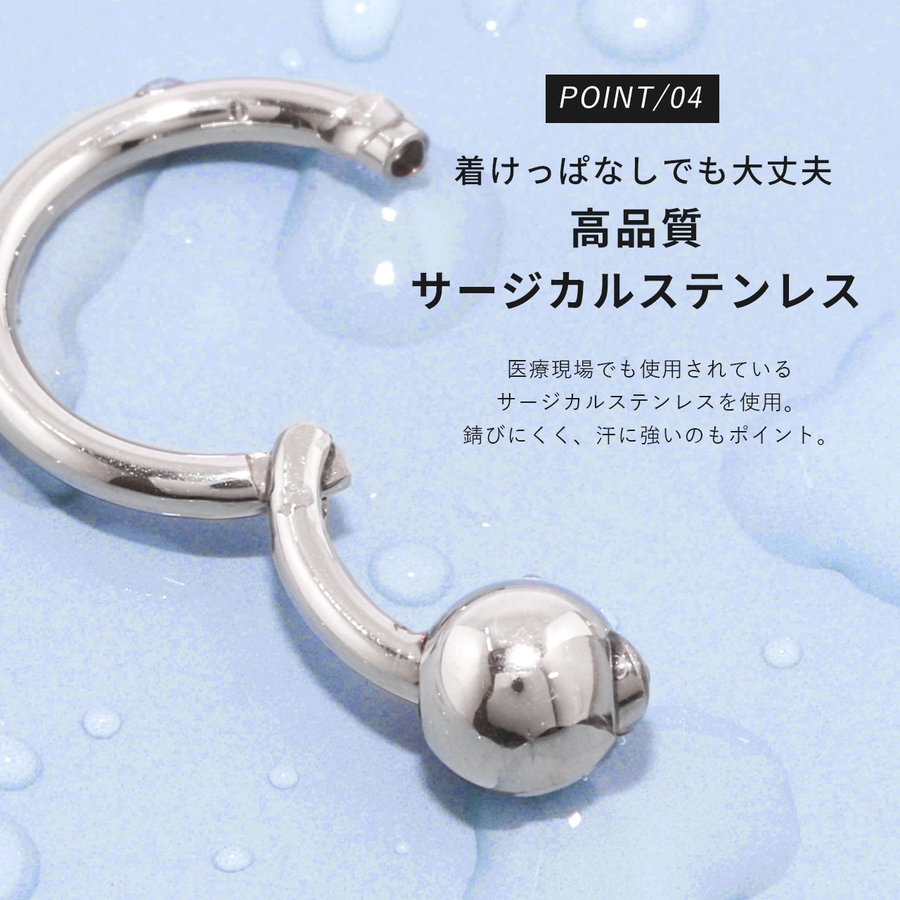 シンプルだからアレンジも自由自在!トラガスやイヤーロブ、ヘリックス、オービタル等色んな部位に使えるから、レディース、メンズ問わず人気のピアスです。
