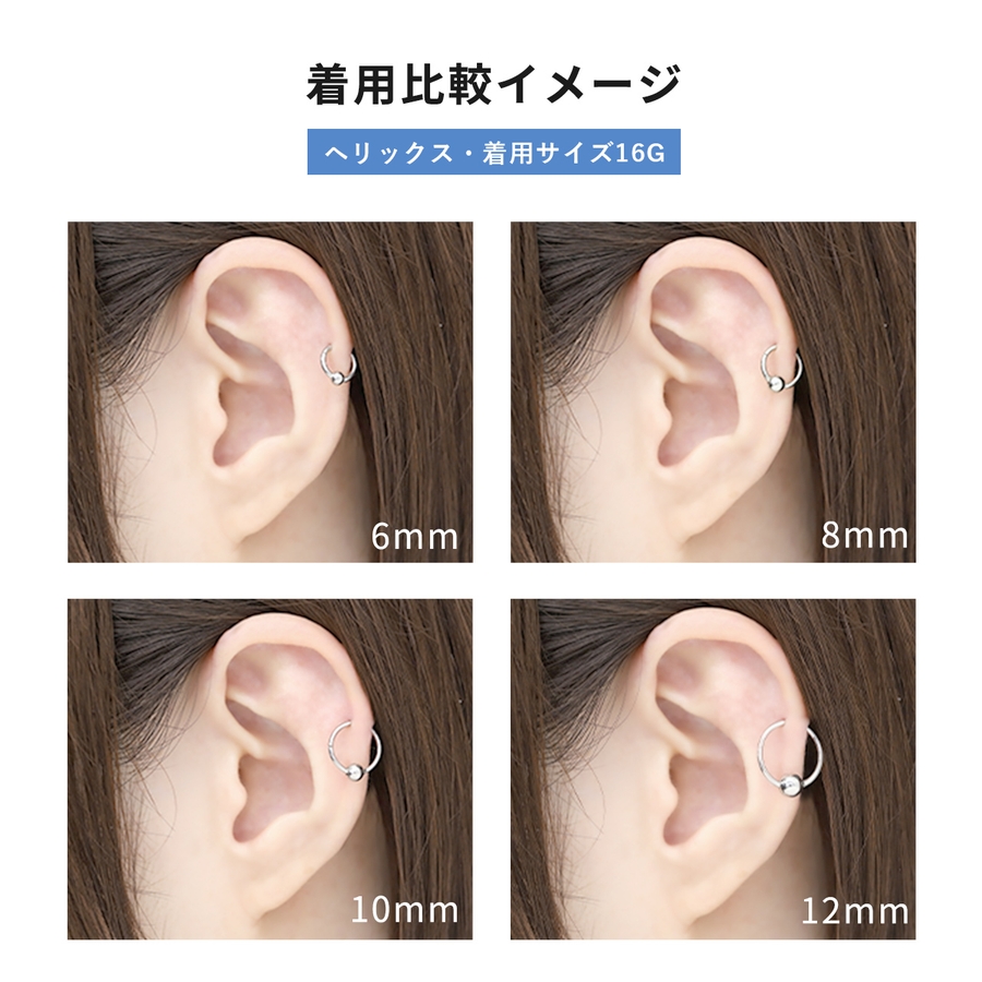 ヘリックス用に買ったのですが、結構重めなのでピアスの穴が安定してない人にはおすすめしません。さん (40代 / 女性 )購入アイテム:カラー ジュエル・シルバー(左耳)サイズ 14G・10mm×4mm