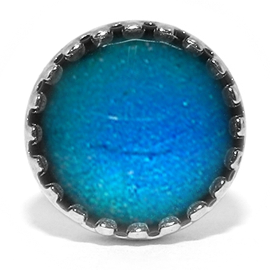 温度によって色が変わる特殊なストーンをはめ込んだボディピアス。