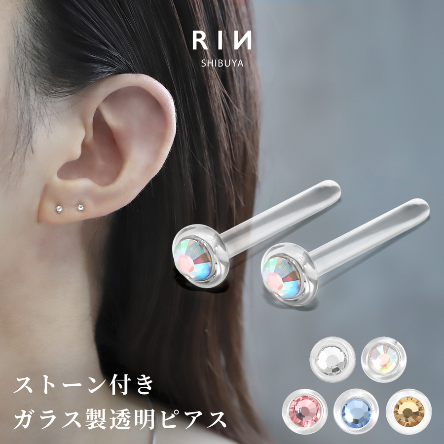 ピアス透明ピアス強化ガラスピアスストーン付き 2個セット さりげない小ぶり