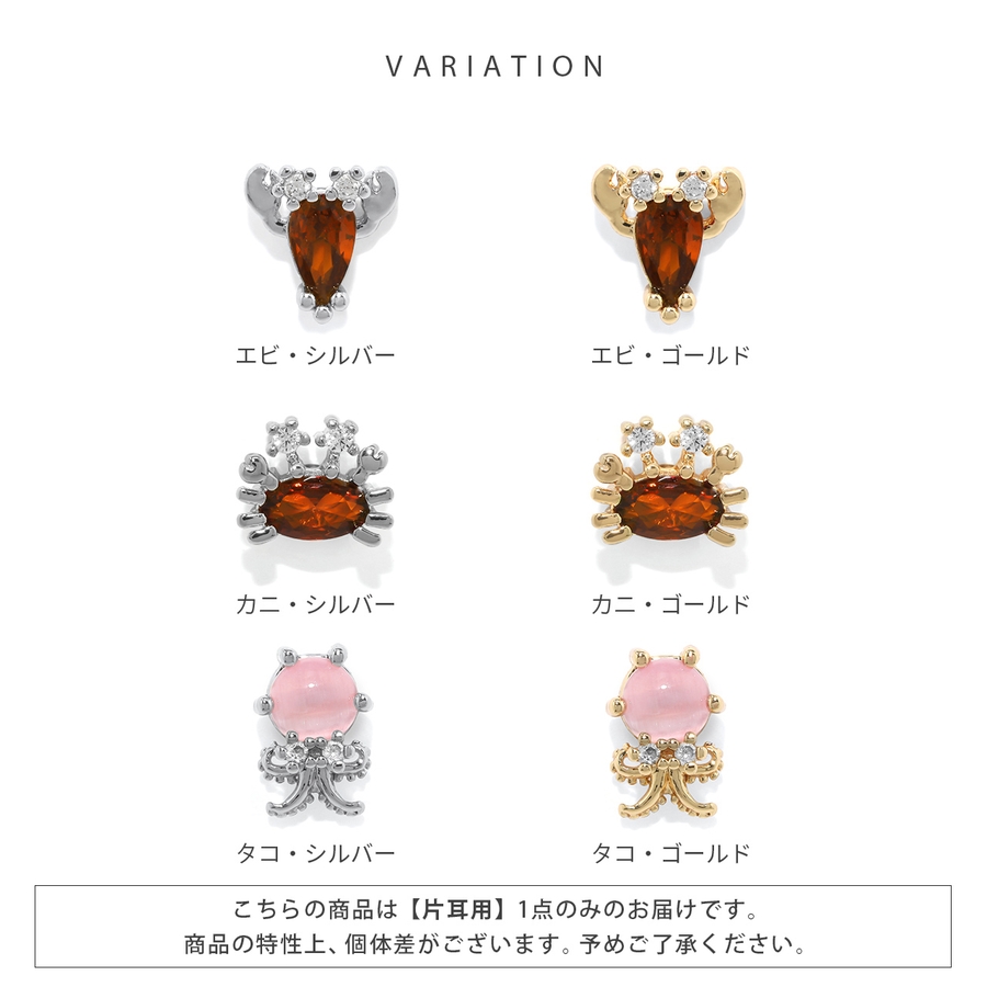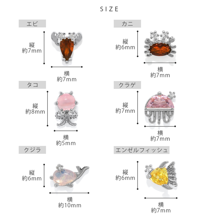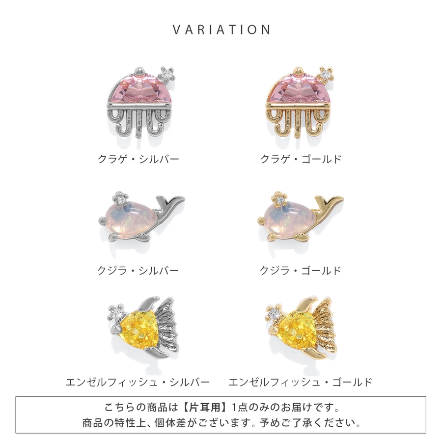 | モチーフ・カラー | エビ・シルバー / エビ・ゴールド / カニ・シルバー / カニ・ゴールド / タコ・シルバー / タコ・ゴールド / クラゲ・シルバー / クラゲ・ゴールド / クジラ・シルバー / クジラ・ゴールド / エンゼルフィッシュ・シルバー / エンゼルフィッシュ・ゴールド |