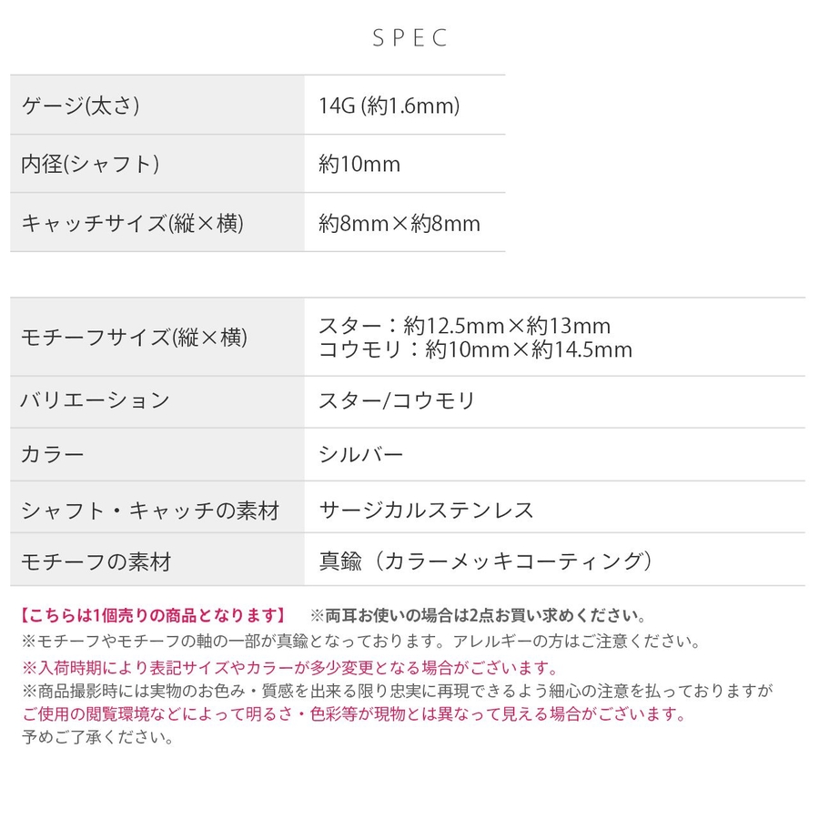 ※本商品の一部カラーは、カラーのメッキコーティングを施しています。体質によって着けたままにされますと、メッキコーティングが剥がれる可能性がございます。