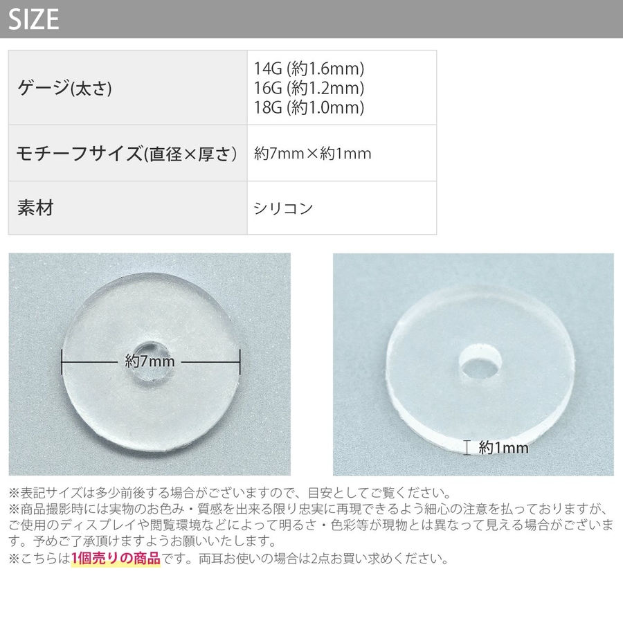芯が長いピアスの調節に買いました。裏につければ、全くわからないのが良いです。一個だけなので、もっと安くても良いかも。