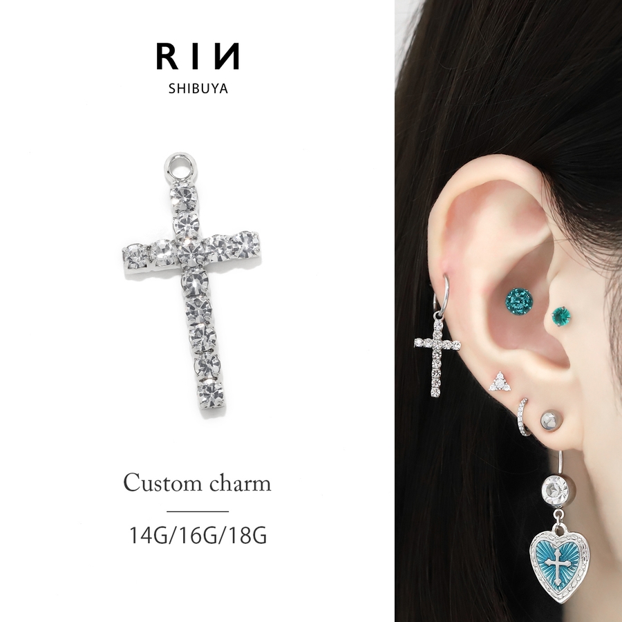 チャーム クロス十字架シルバーCZ アレンジパーツカスタマイズピアスボディピアス