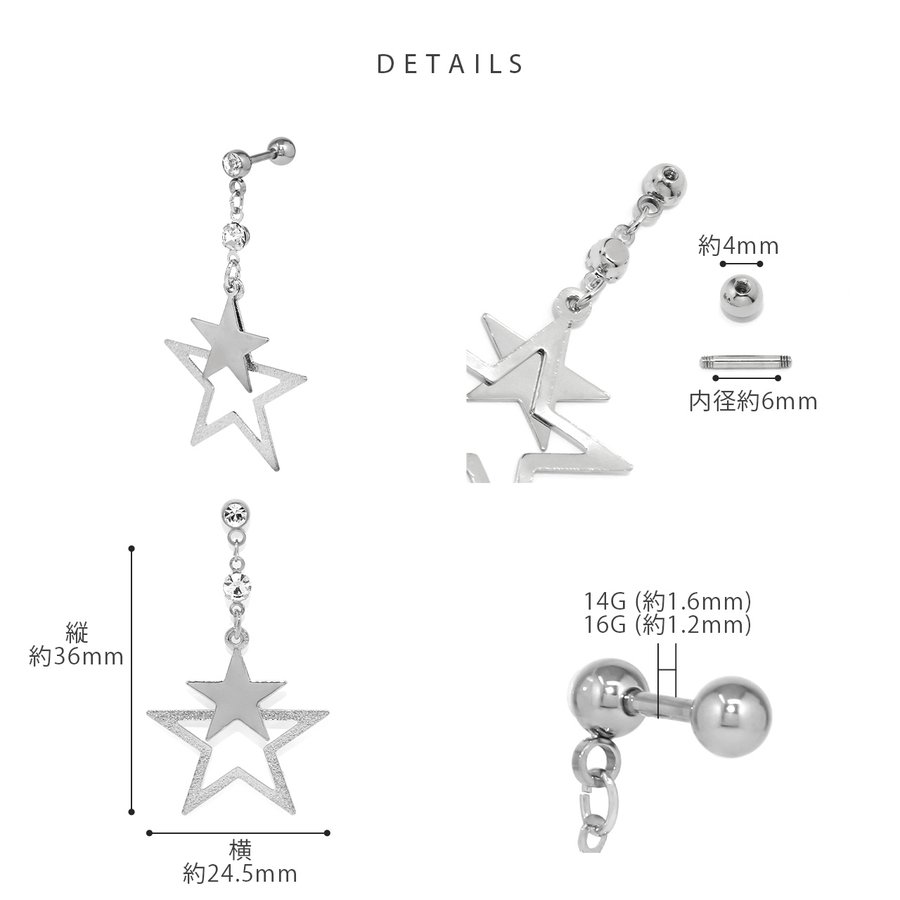 ボディピアス 星チャーム付きスター宇宙 ボディーピアス