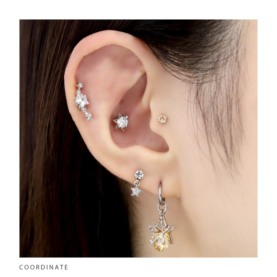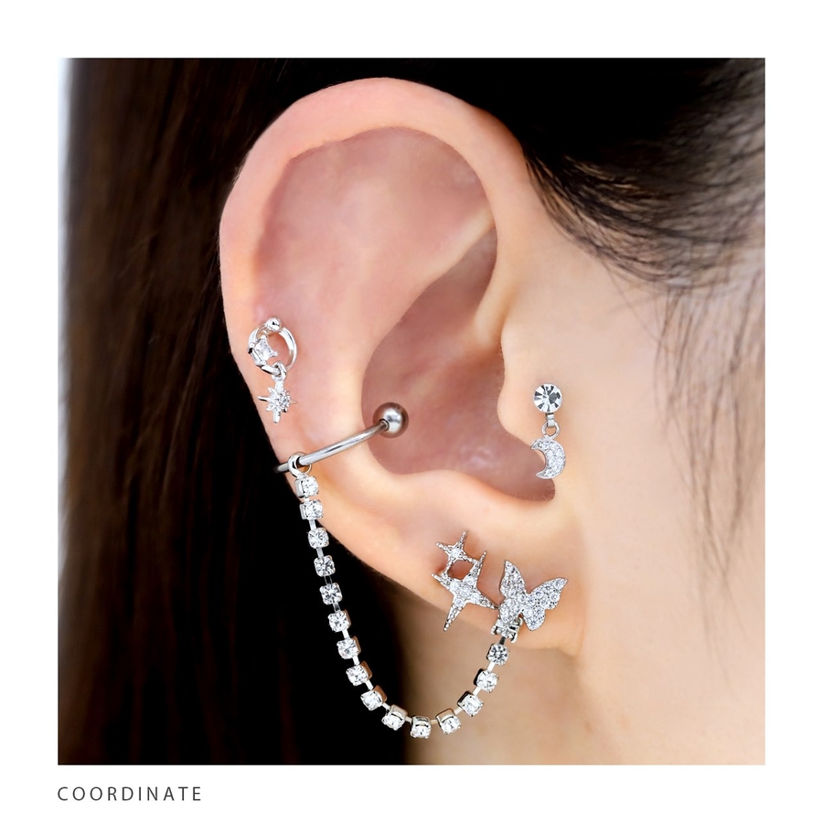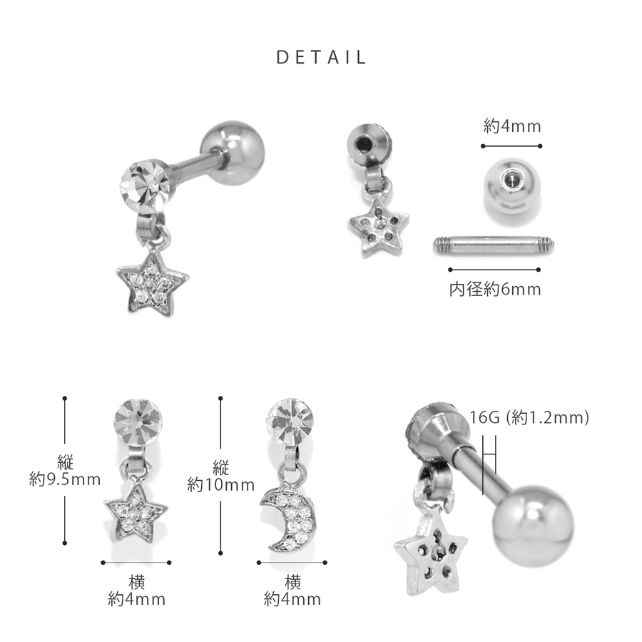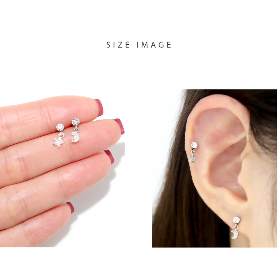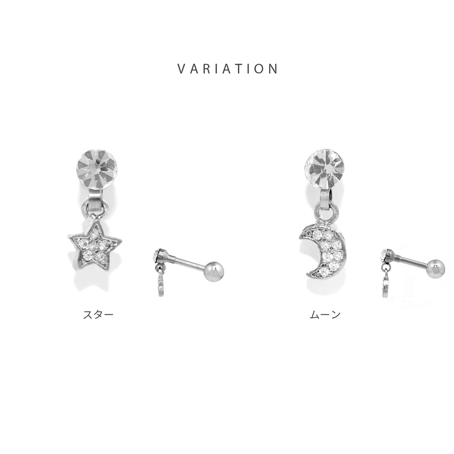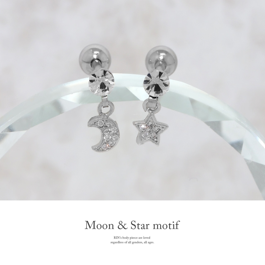 軟骨ピアス スター&ムーンピアス星月ジュエルチャーム揺れる ボディピアス