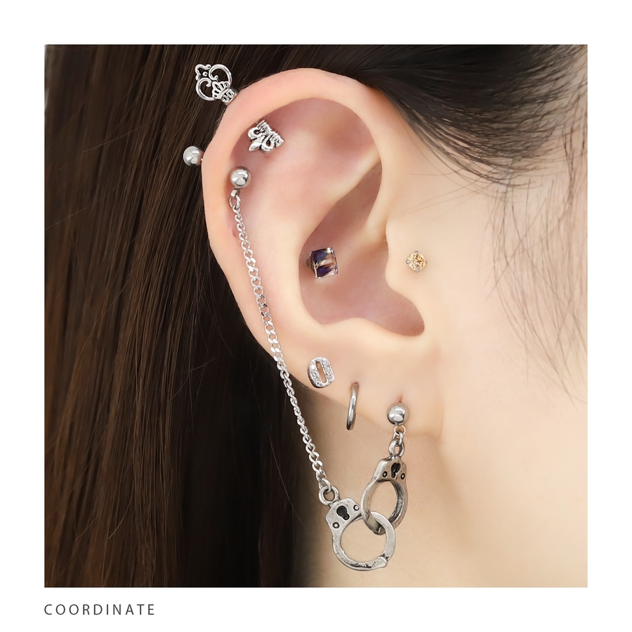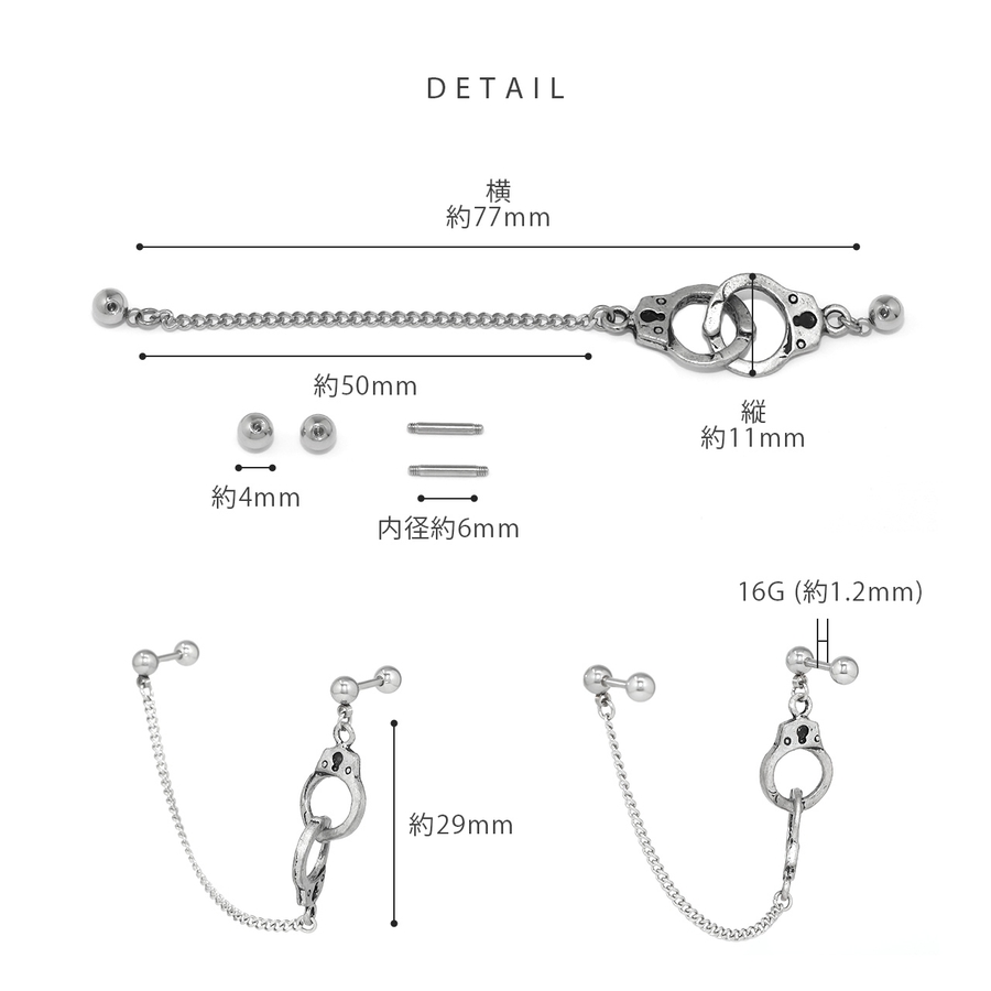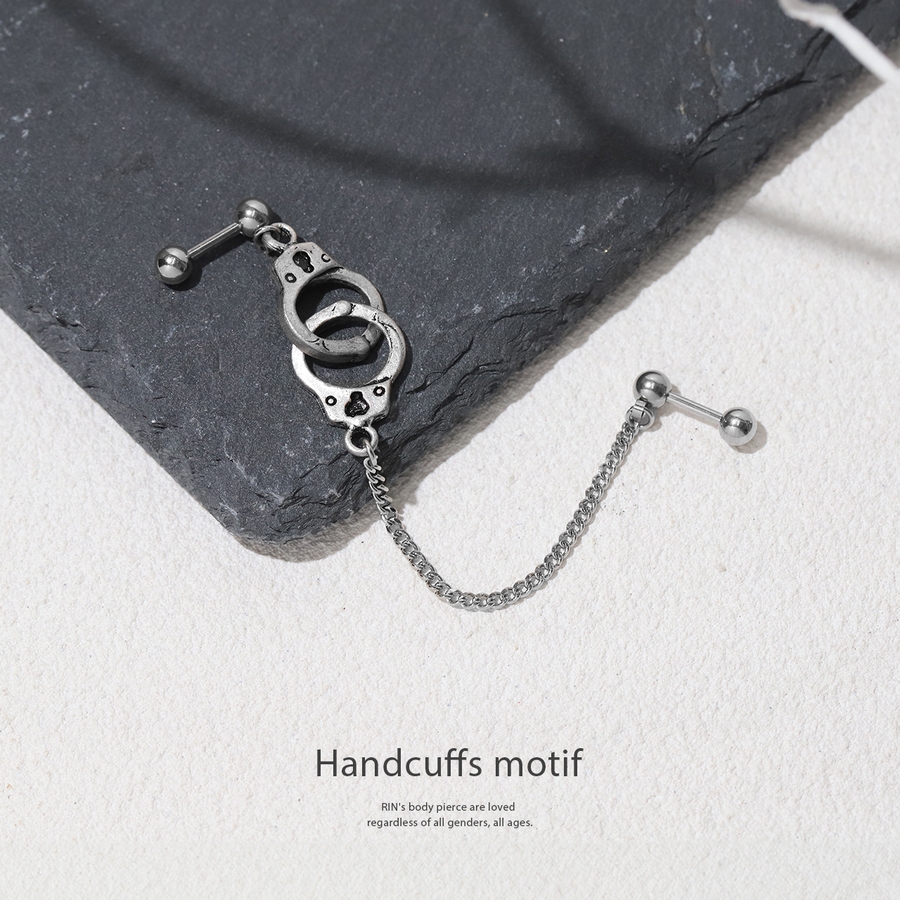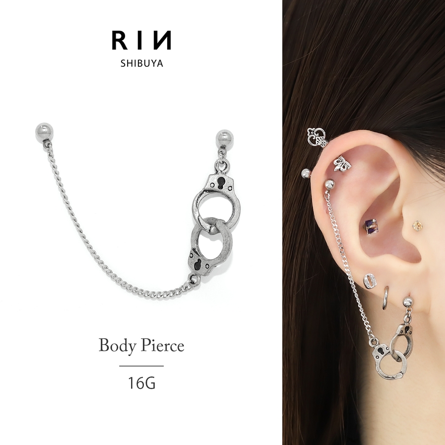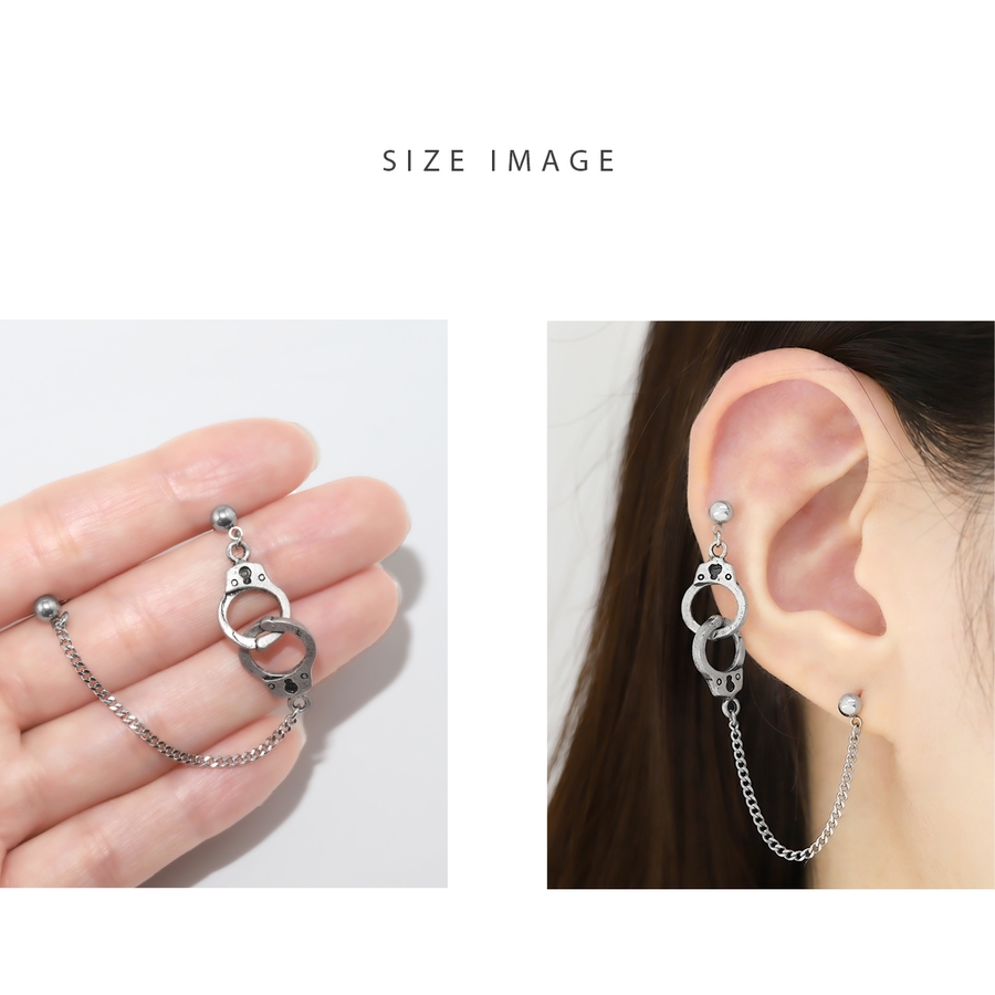 軟骨ピアス 手錠チェーン個性派Wチャーム揺れるクールハロウィン ボディピアス