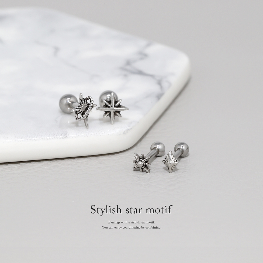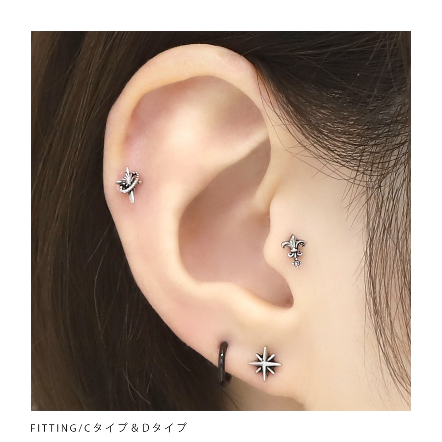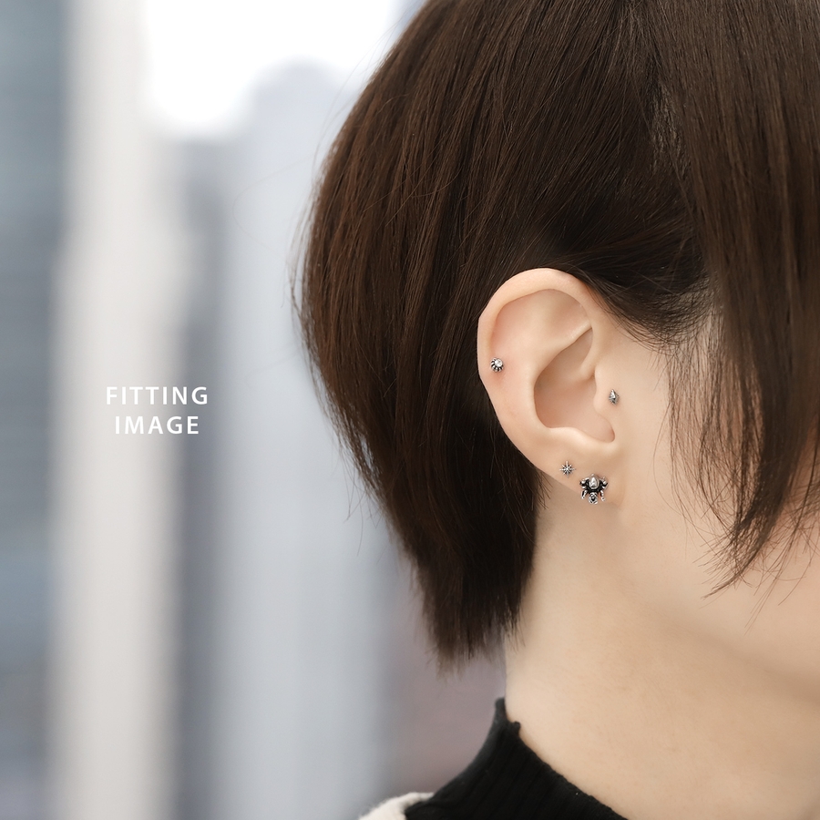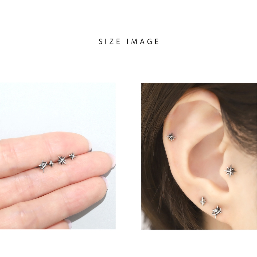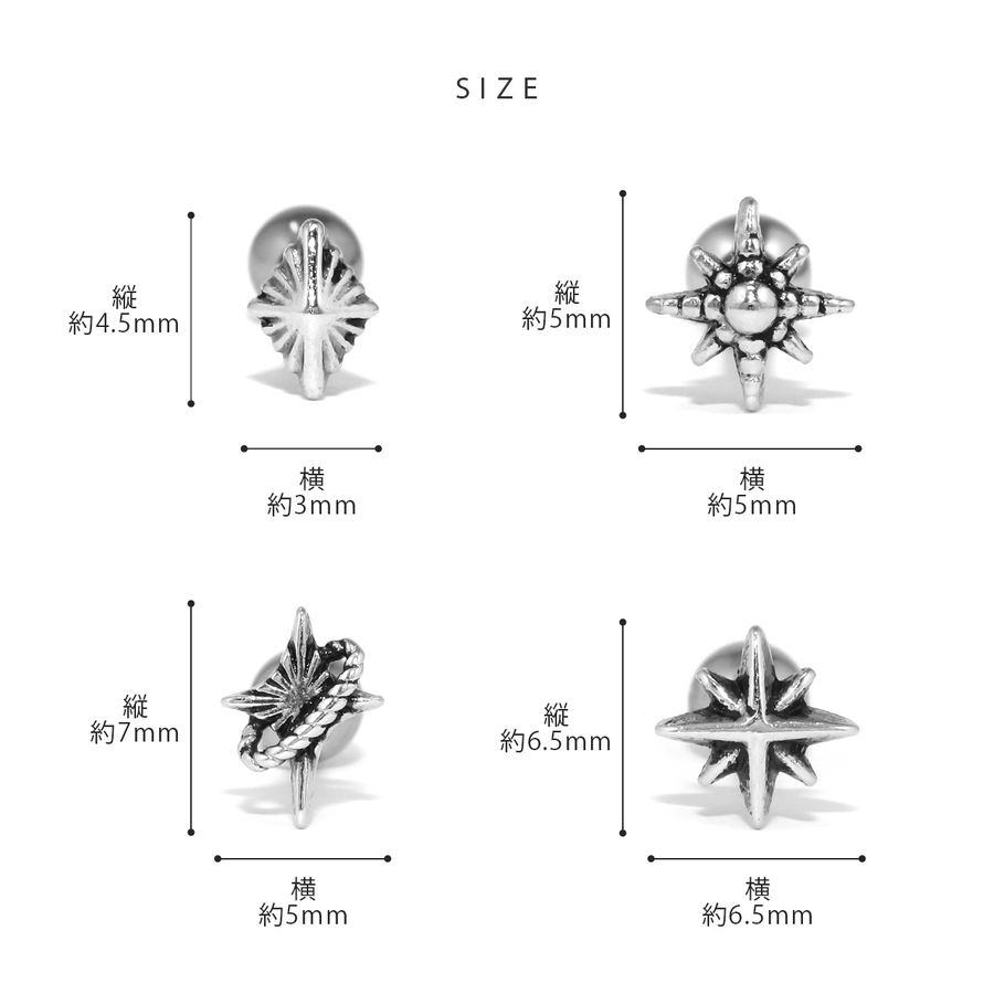 軟骨ピアス スタースタッドピアス 星スパークメタルゴシックアンティークシルバー調