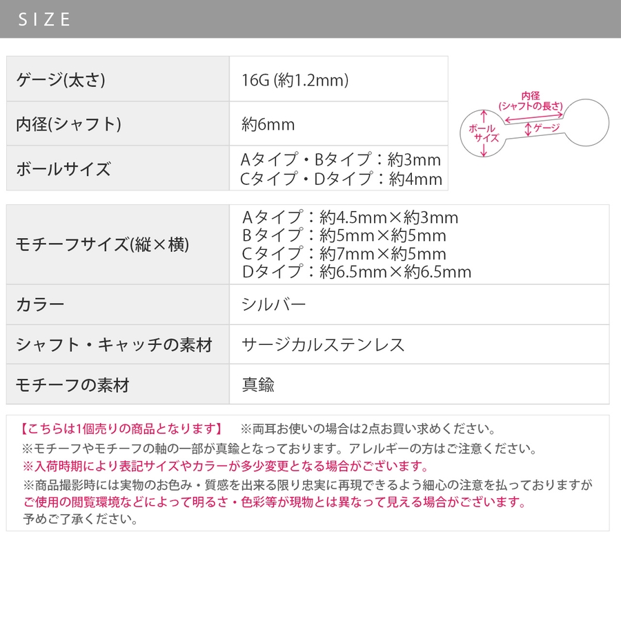 Aタイプ:約4.5mm×約3mm Bタイプ:約5mm×約5mm Cタイプ:約7mm×約5mm Dタイプ:約6.5mm×約6.5mm