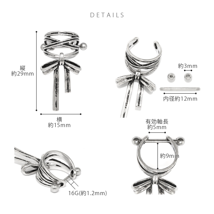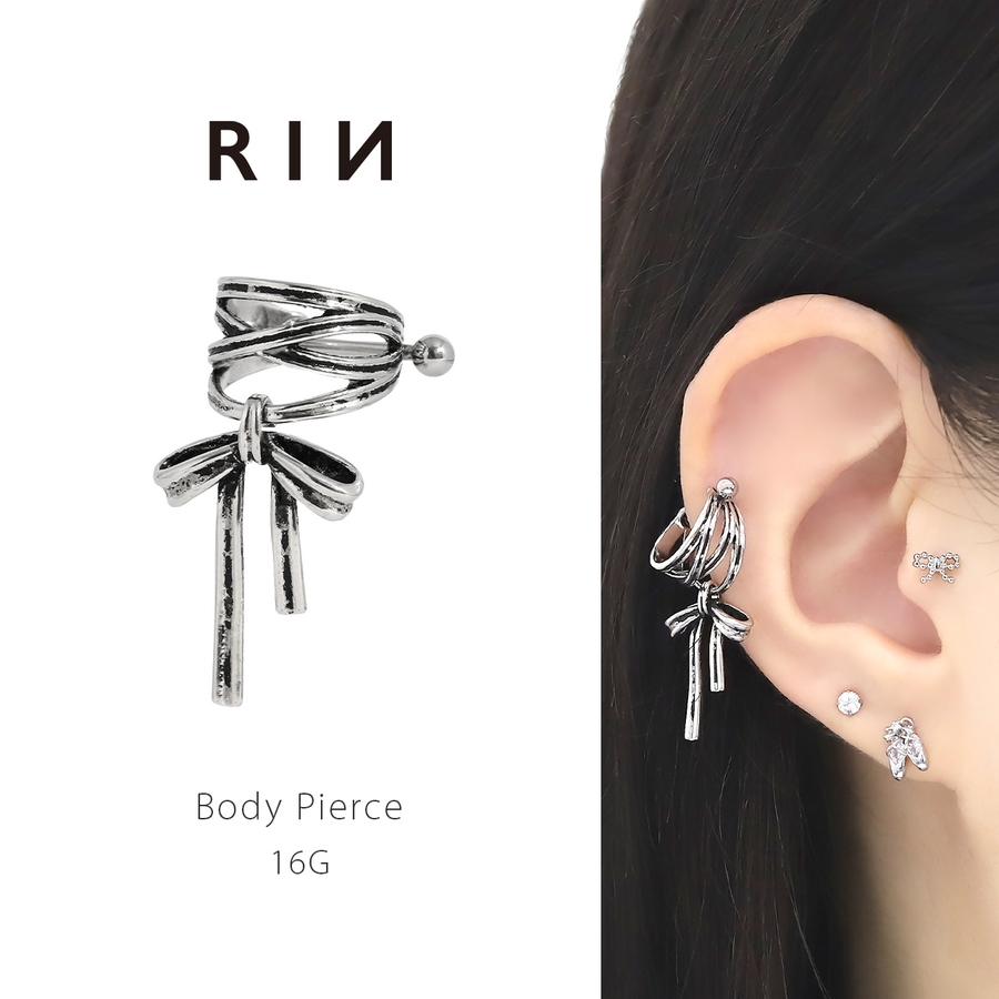 軟骨ピアス リボンバレエコアシールドピアスシンプル大きめ ボディピアス