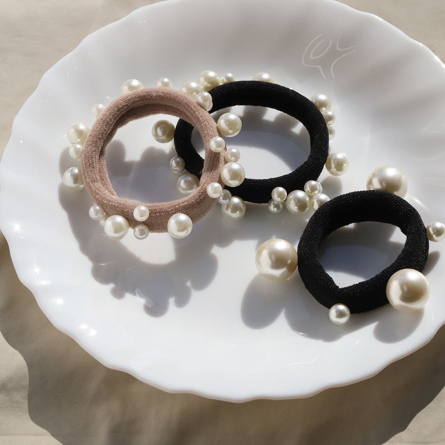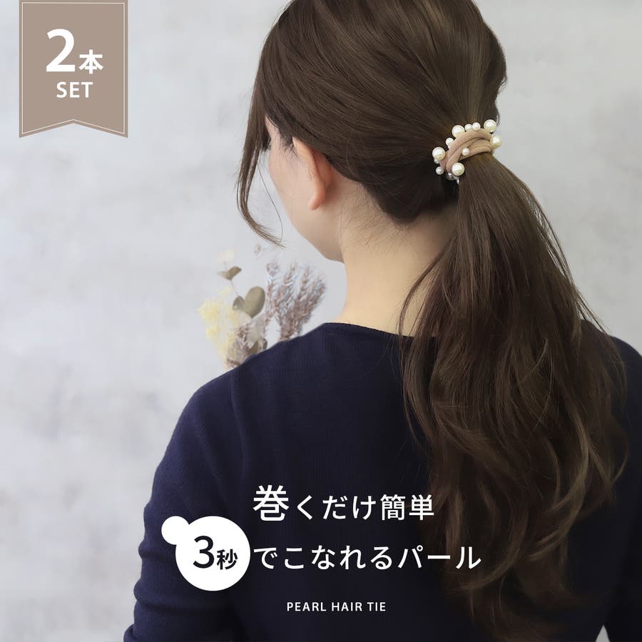ヘアアクセサリー ゴムセット パールランダム跡がつきにくいナチュラルヘアゴム