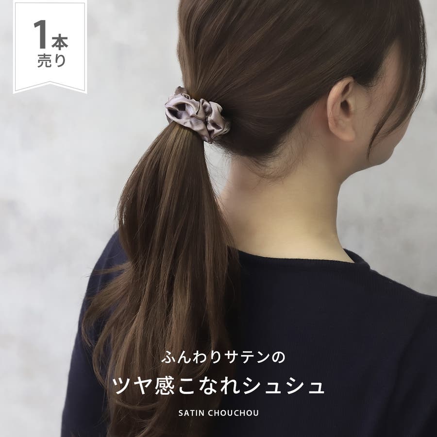 ヘアアクセサリー シュシュchouchou 跡がつきにくいサテン生地光沢なめらか…
