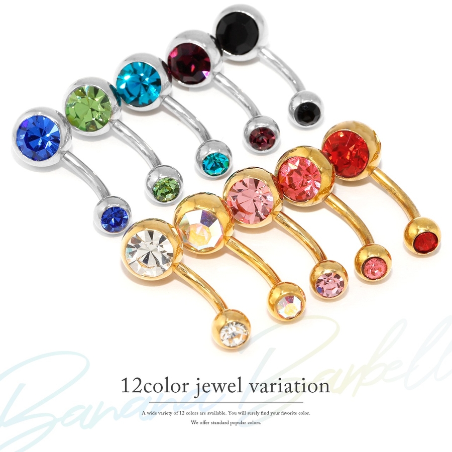 赤色系、青色系、白、緑とカラージュエリー豊富なボディピアスです。体の各部位をお洒落に演出してくれます。黄色系もあったらいいと思いました。