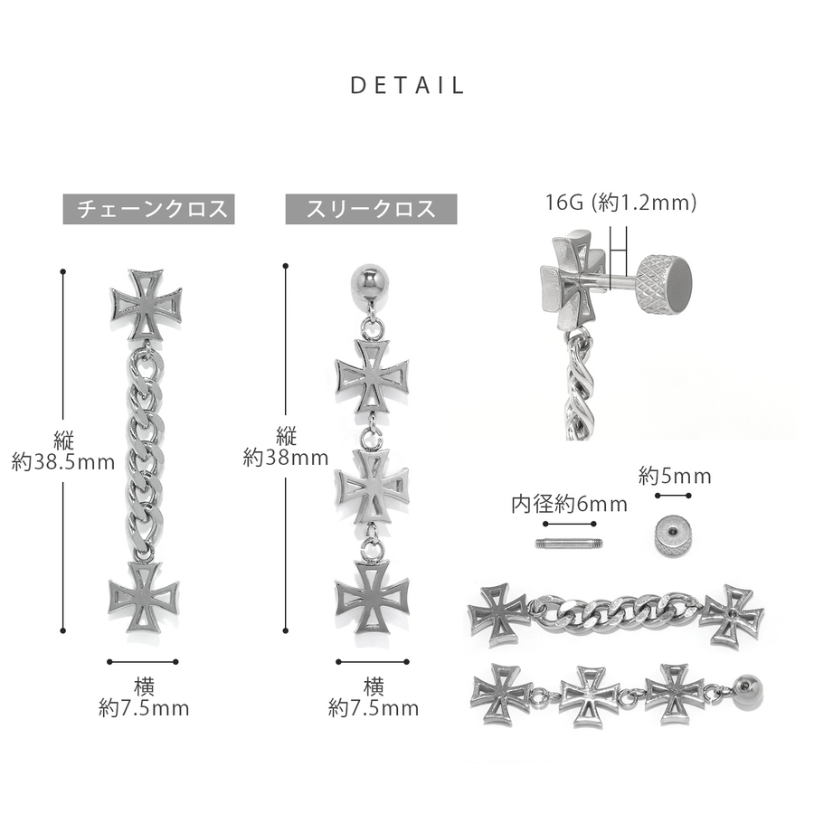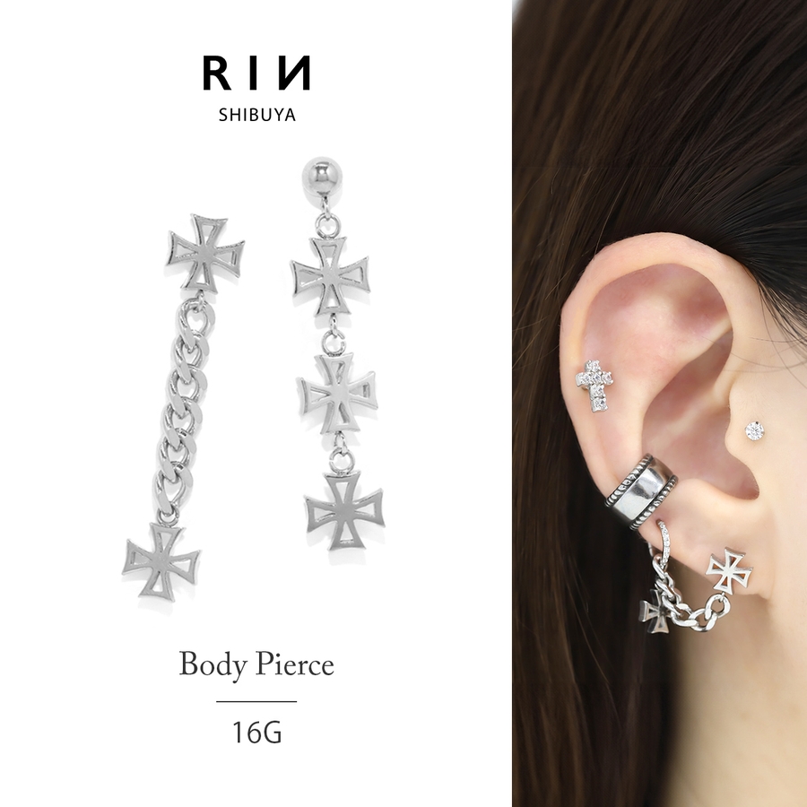ボディピアス 十字架クロス チェーン軟骨ピアス