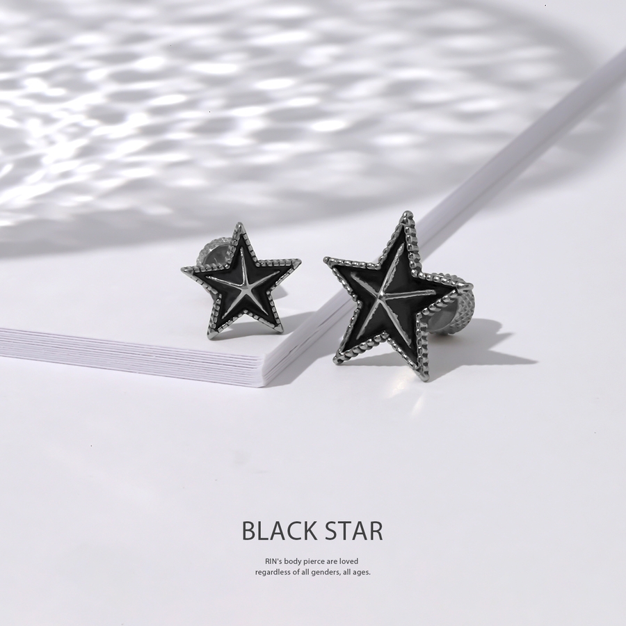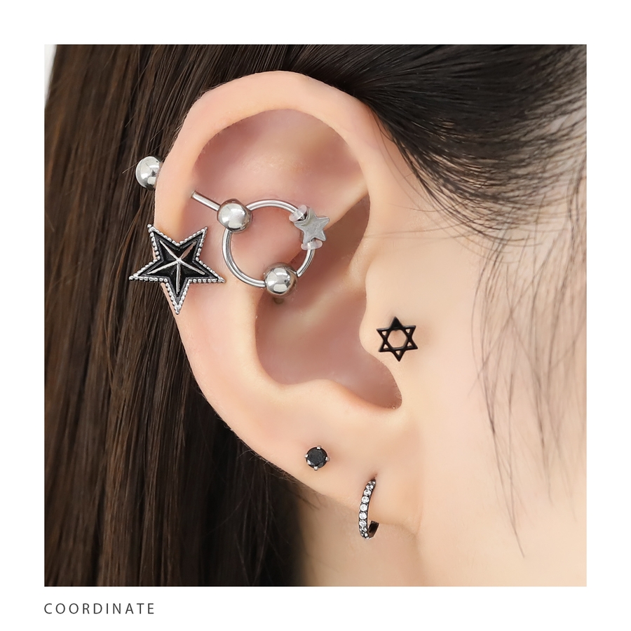 ボディピアス軟骨ピアスピアス スターブラックストレートバーベル サージカルステン…