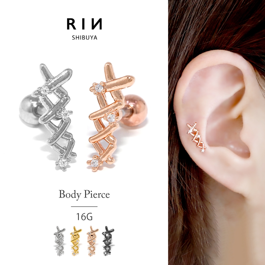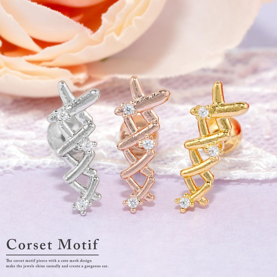 軟骨ピアス コルセットジュエル レースアップ編み上げストレートバーベルボディピア…