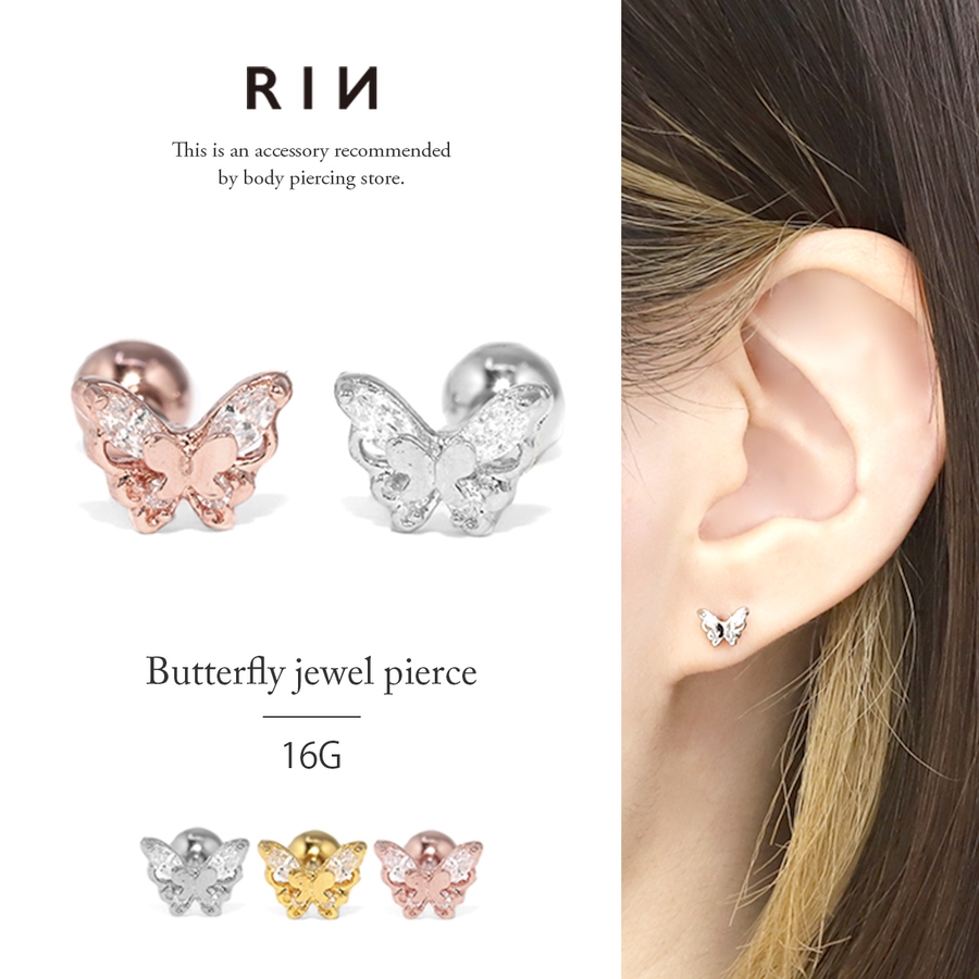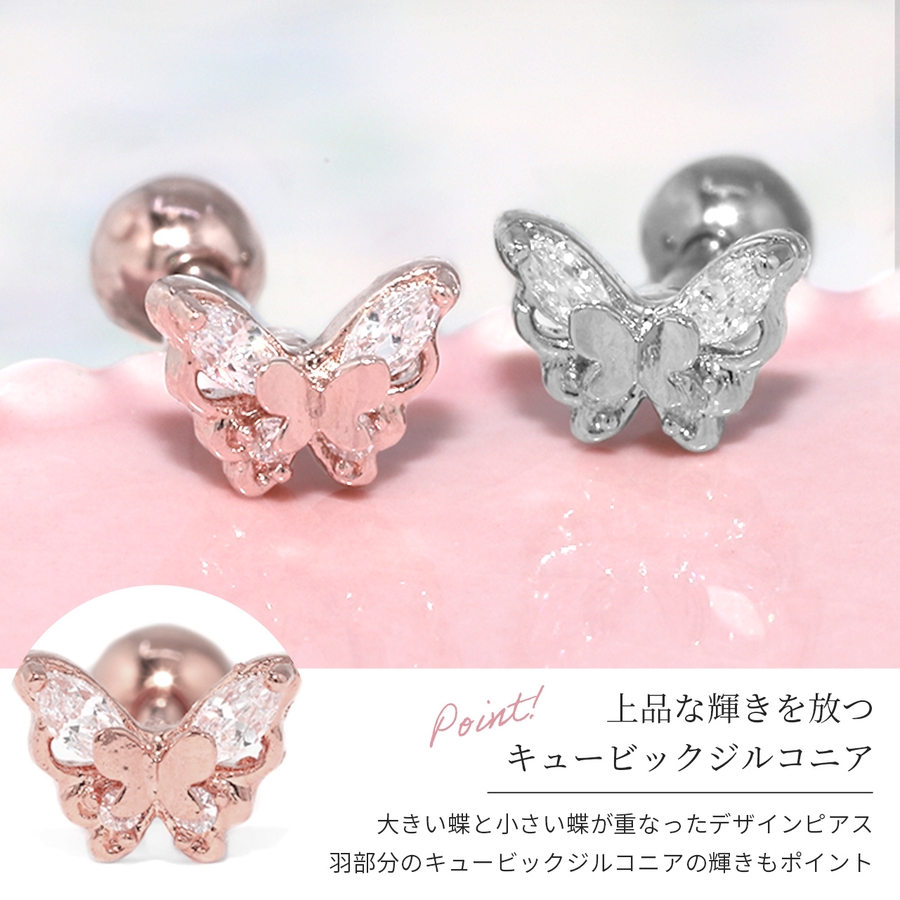 ボディピアス軟骨ピアス 可愛い蝶ピアス キュービックジルコニア