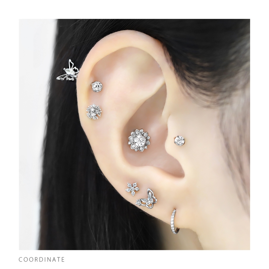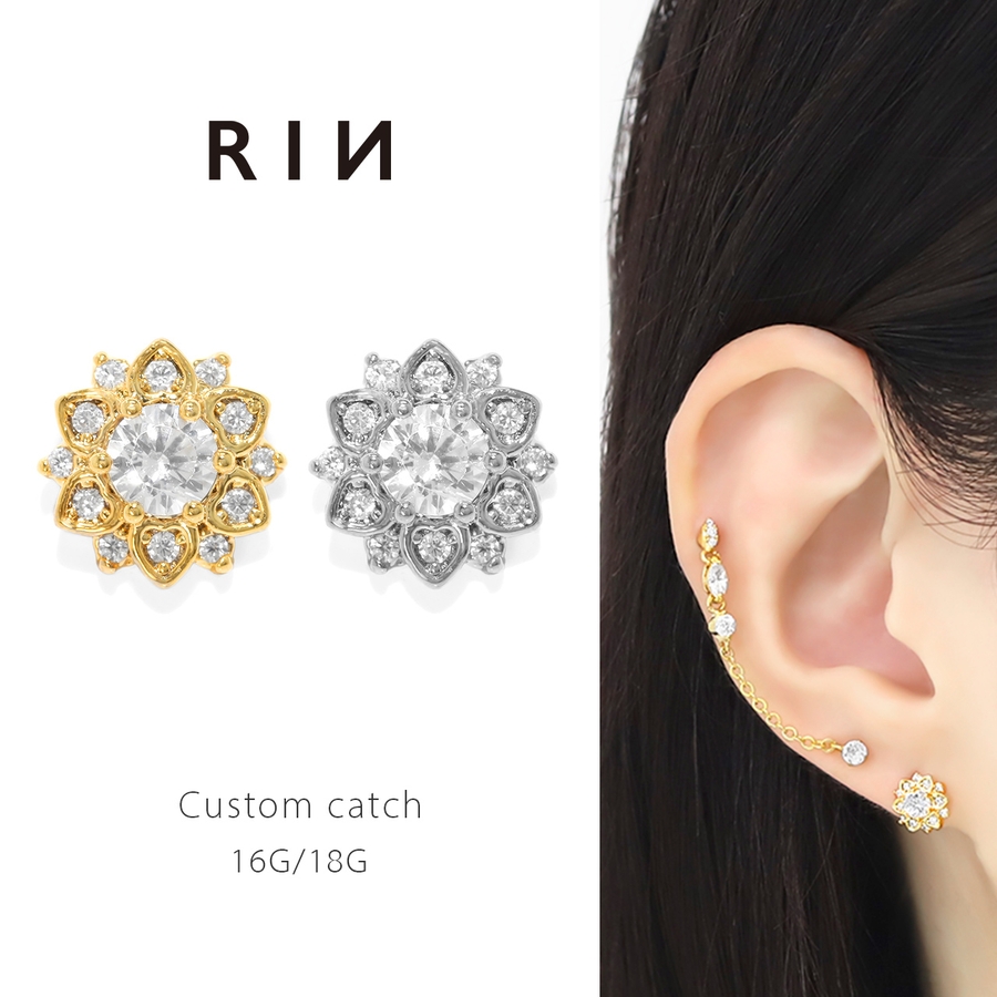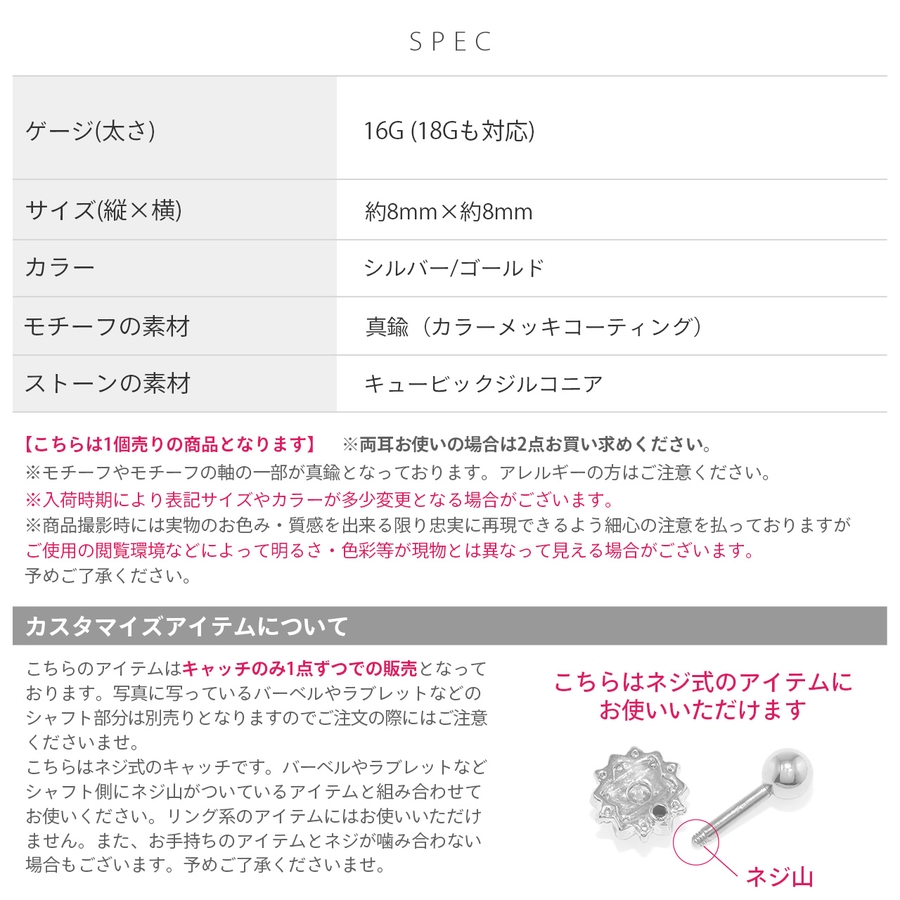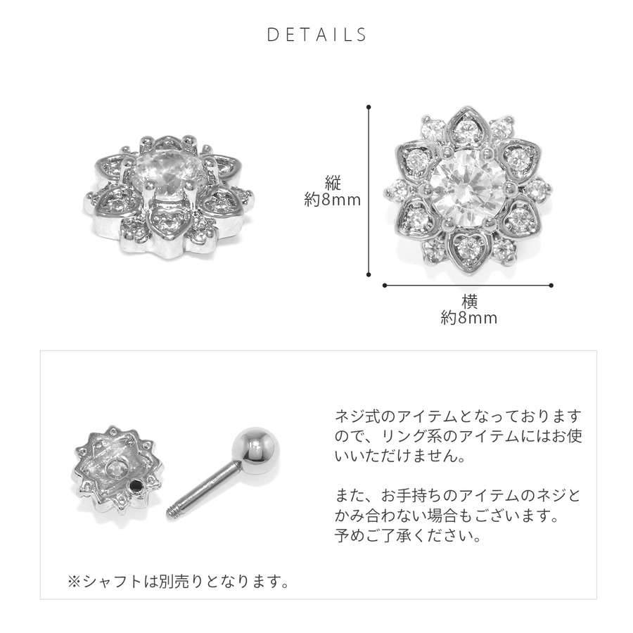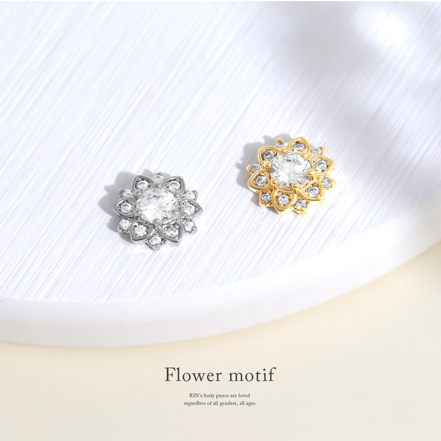 キャッチ 花フラワー上品ジュエルキュービックジルコニア ボディピアス
