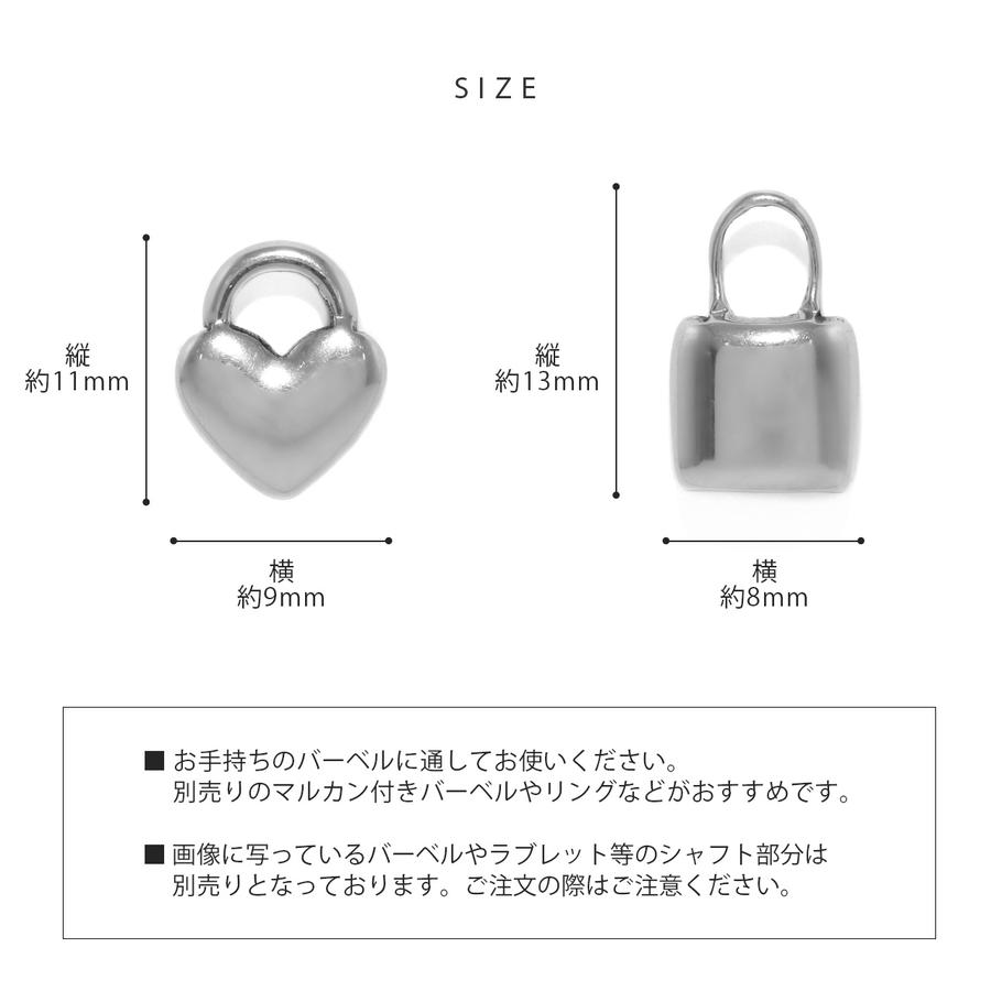 チャーム ハート南京錠シルバーパドロックスタイリッシュ アレンジパーツカスタマイ…