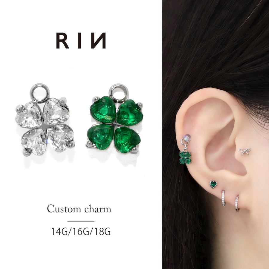 チャーム 四つ葉のクローバージルコニア揺れるかわいい ボディピアス