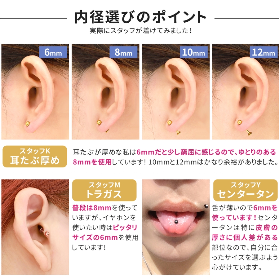 さん (30代 / 女性 )購入アイテム:内径/ボールサイズ 8mm×4mmゲージ/カラー 18G・ブラック