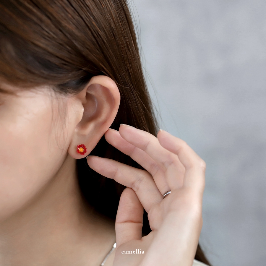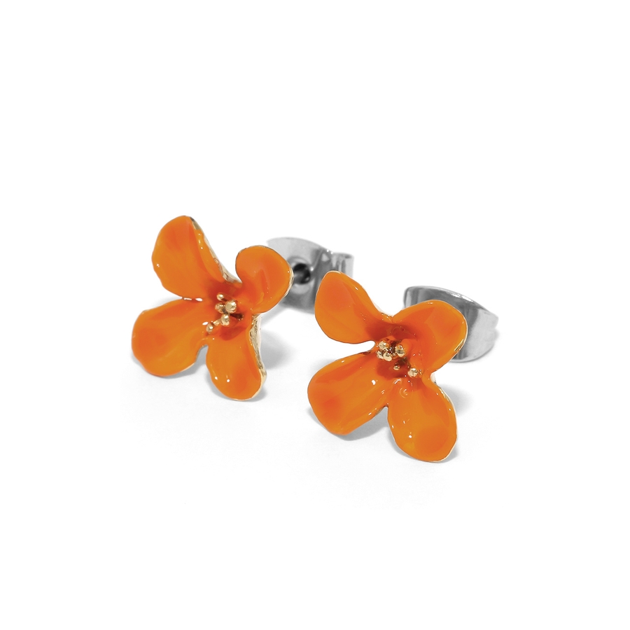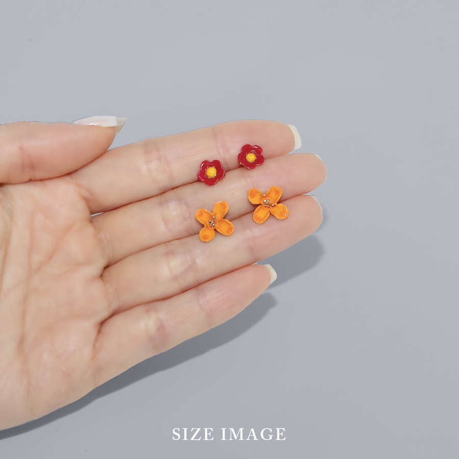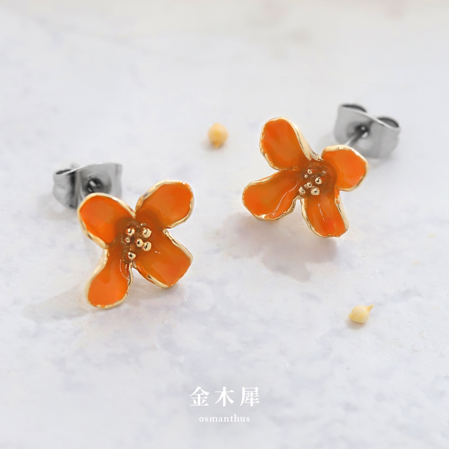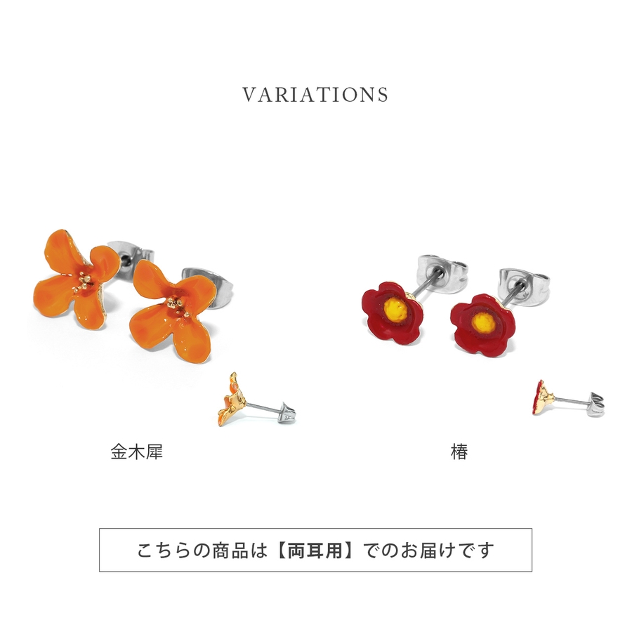 ステンレスピアス 金木犀オレンジ椿赤フラワー花華やか上品金色セレモニー アクセサ…