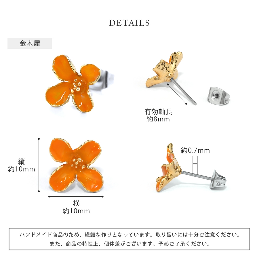 金木犀モチーフオレンジカラー椿レッドフラワーピアス レディース小ぶりアクセサリー…