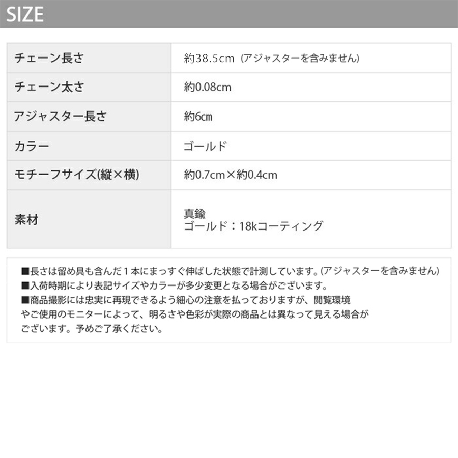 ※長さは留め具を含んだ1本にまっすぐ伸ばした状態で計測しています。 (アジャスターを含みません)