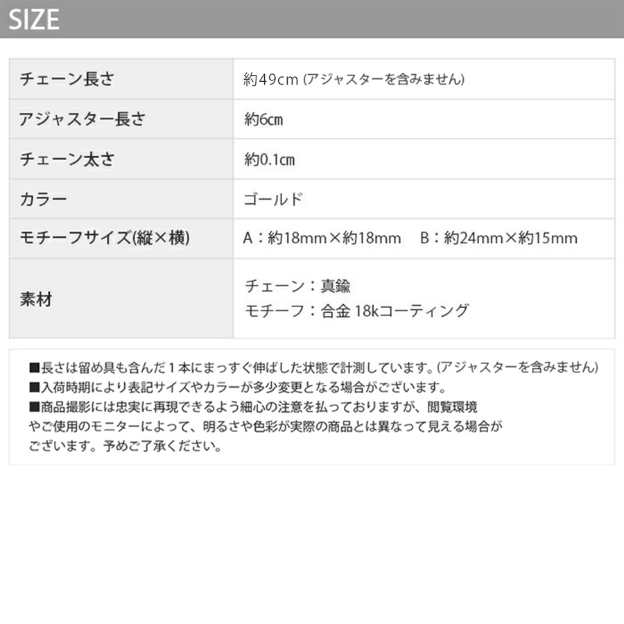 ※長さは留め具を含んだ1本にまっすぐ伸ばした状態で計測しています。 (アジャスターを含みません)