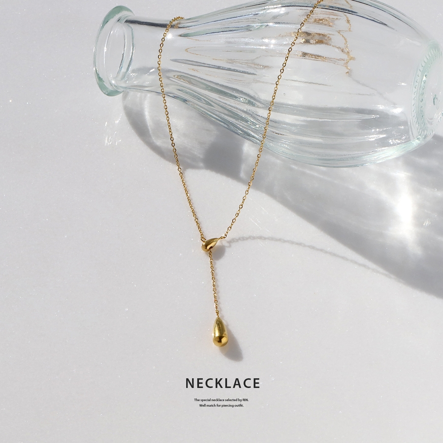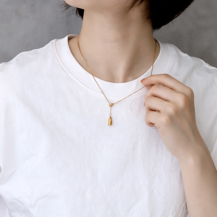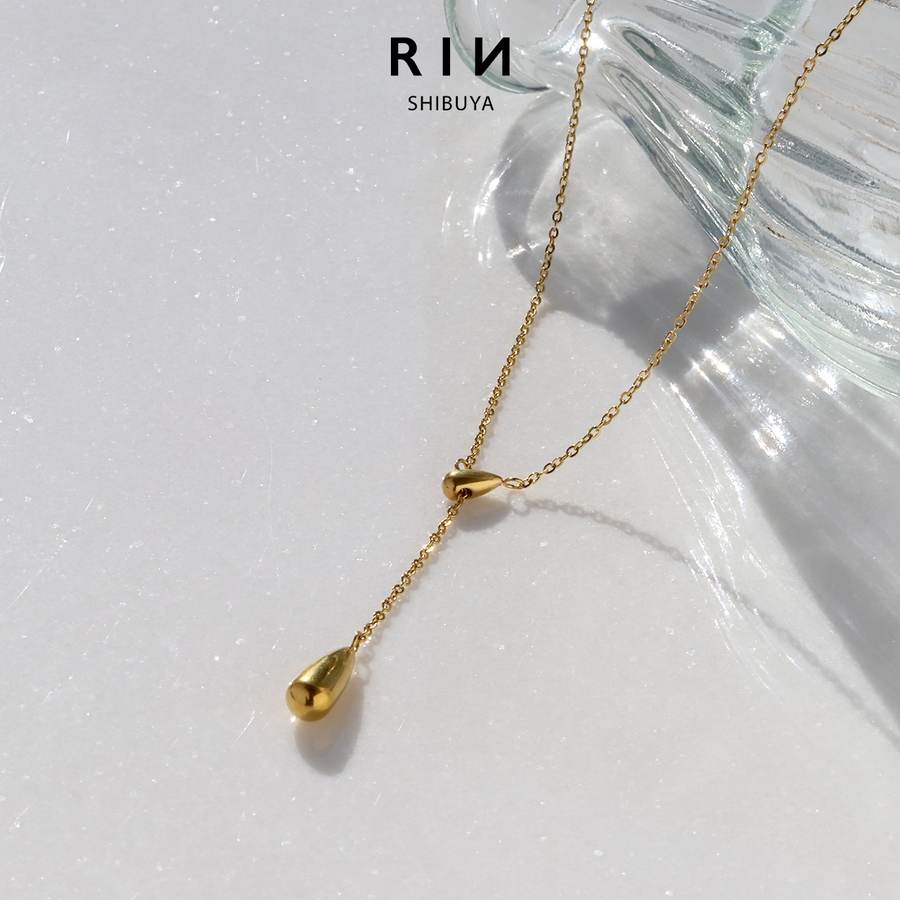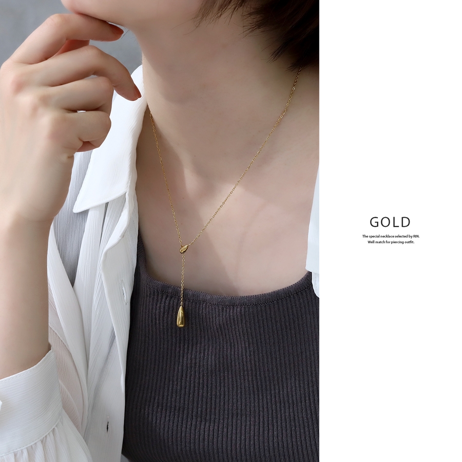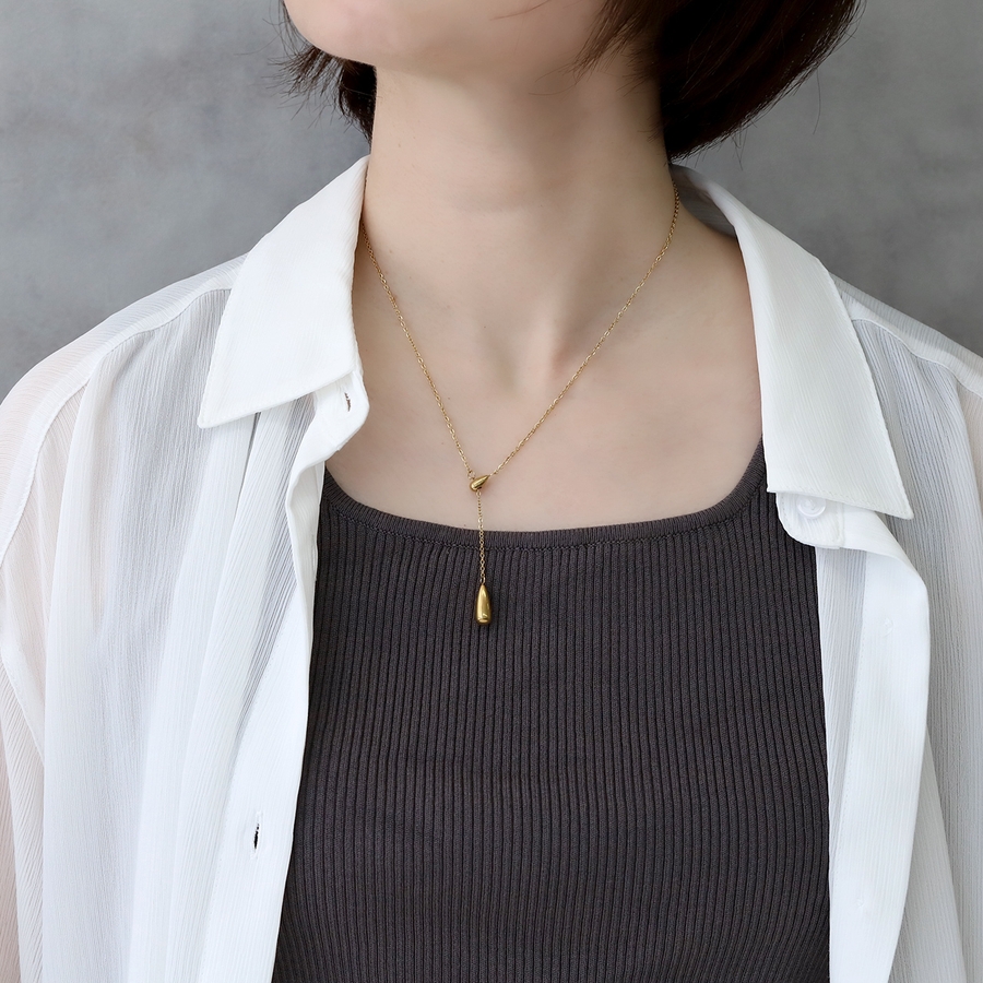 ネックレス ドロップ雫Y字 ラリエット18Kサージカルステンレス