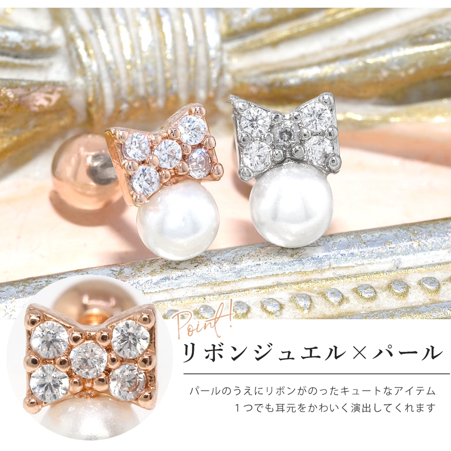 ボディピアス リボン パール