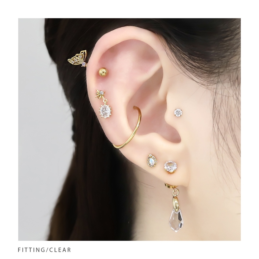 ボディピアスドロップジュエル 立爪ダブルフェイス 軟骨ピアス