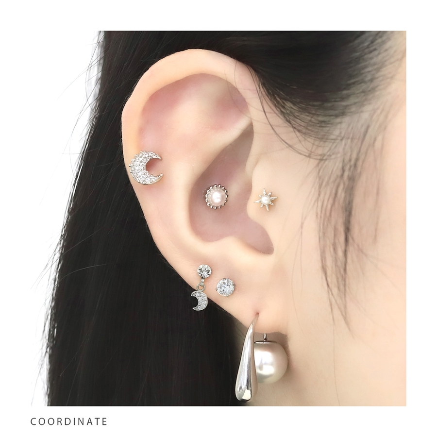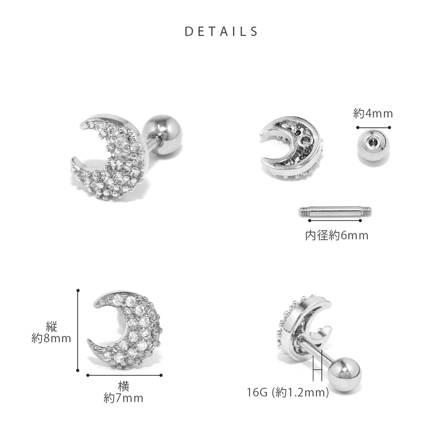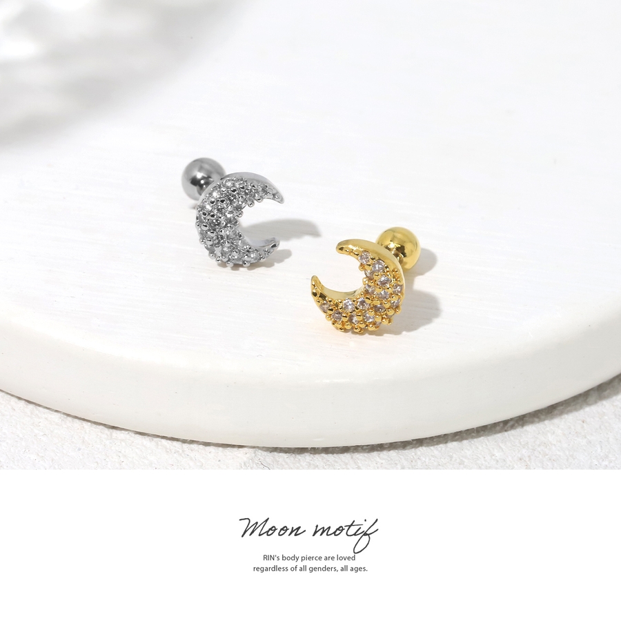 軟骨ピアス 三日月ジュエルムーンシルバーゴールドキュービックジルコニア ボディピ…
