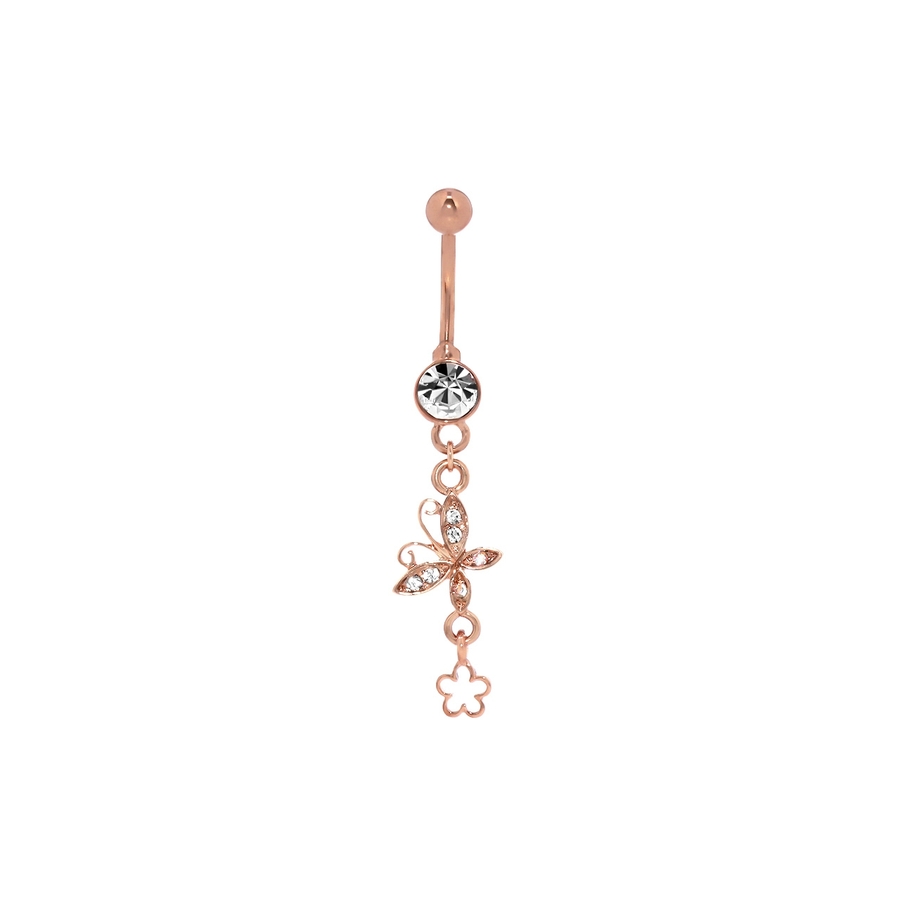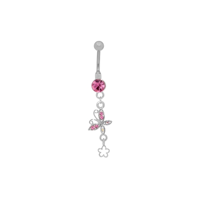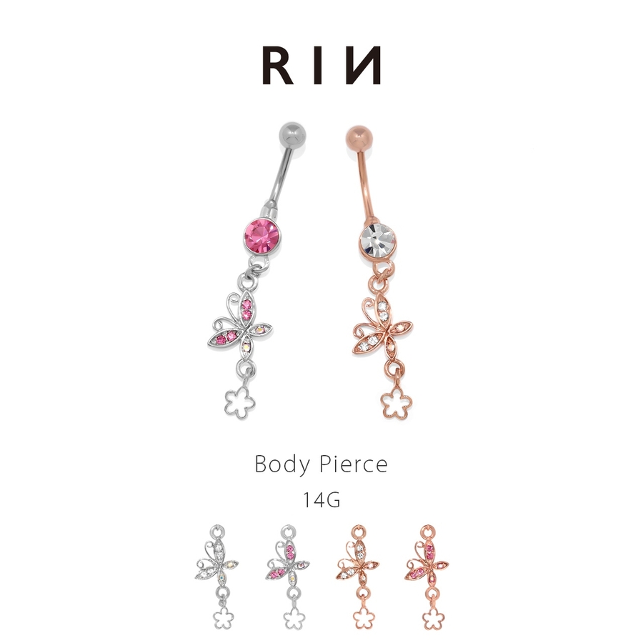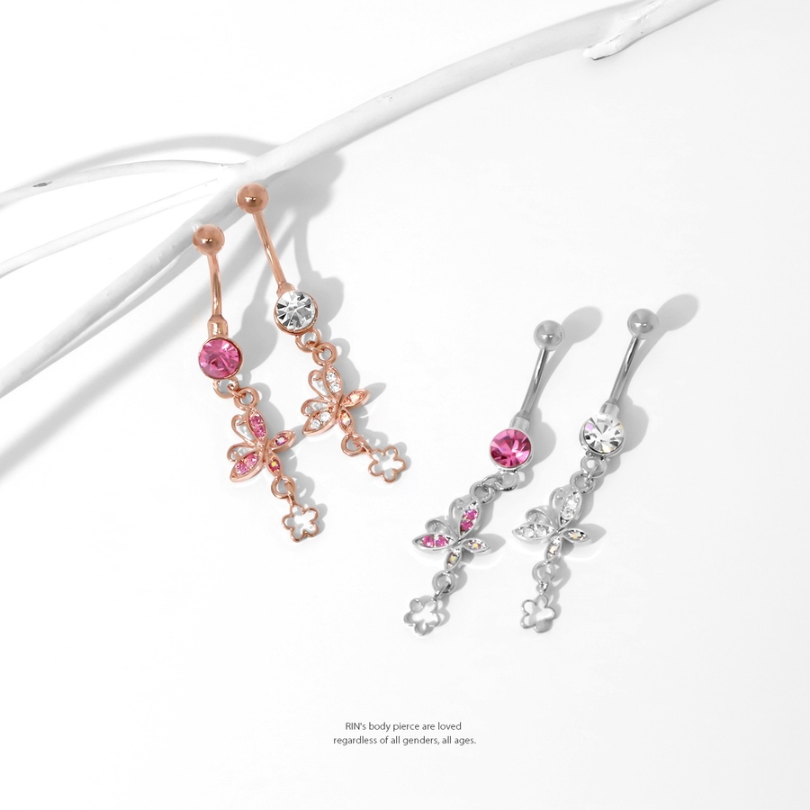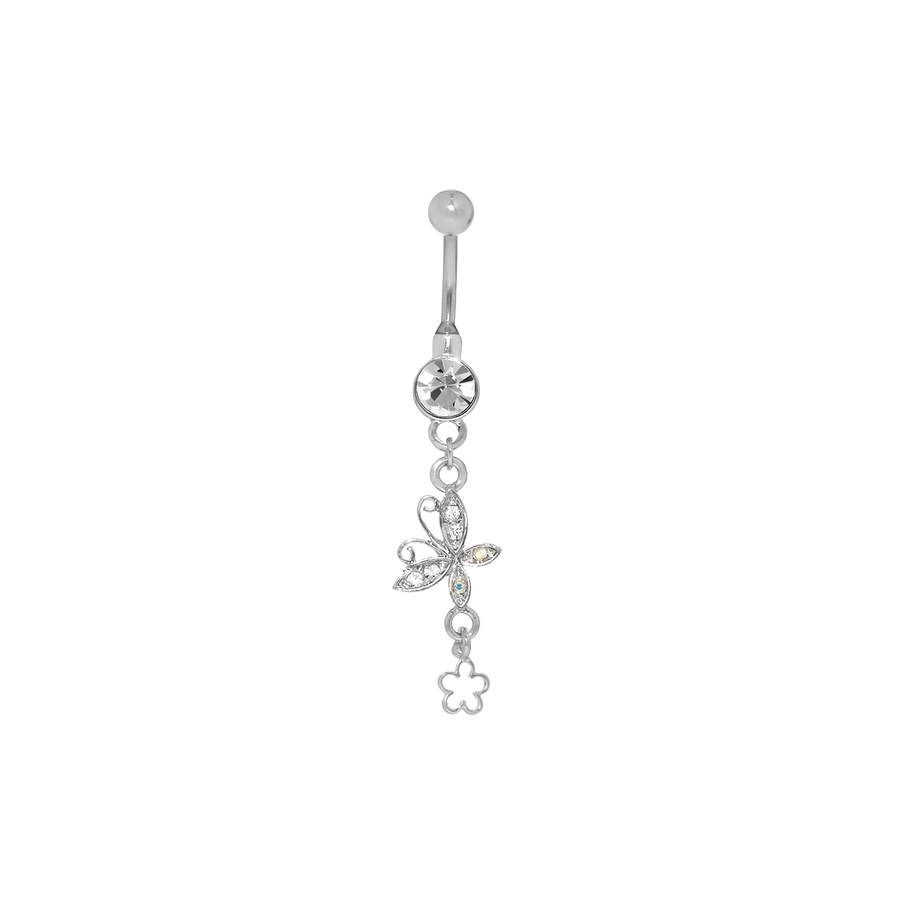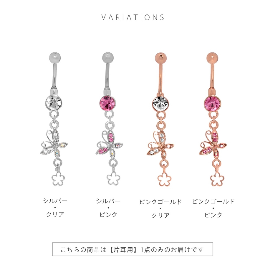 へそピアス かわいいバタフライ花ちょうちょ揺れるキラキラ ボディピアス